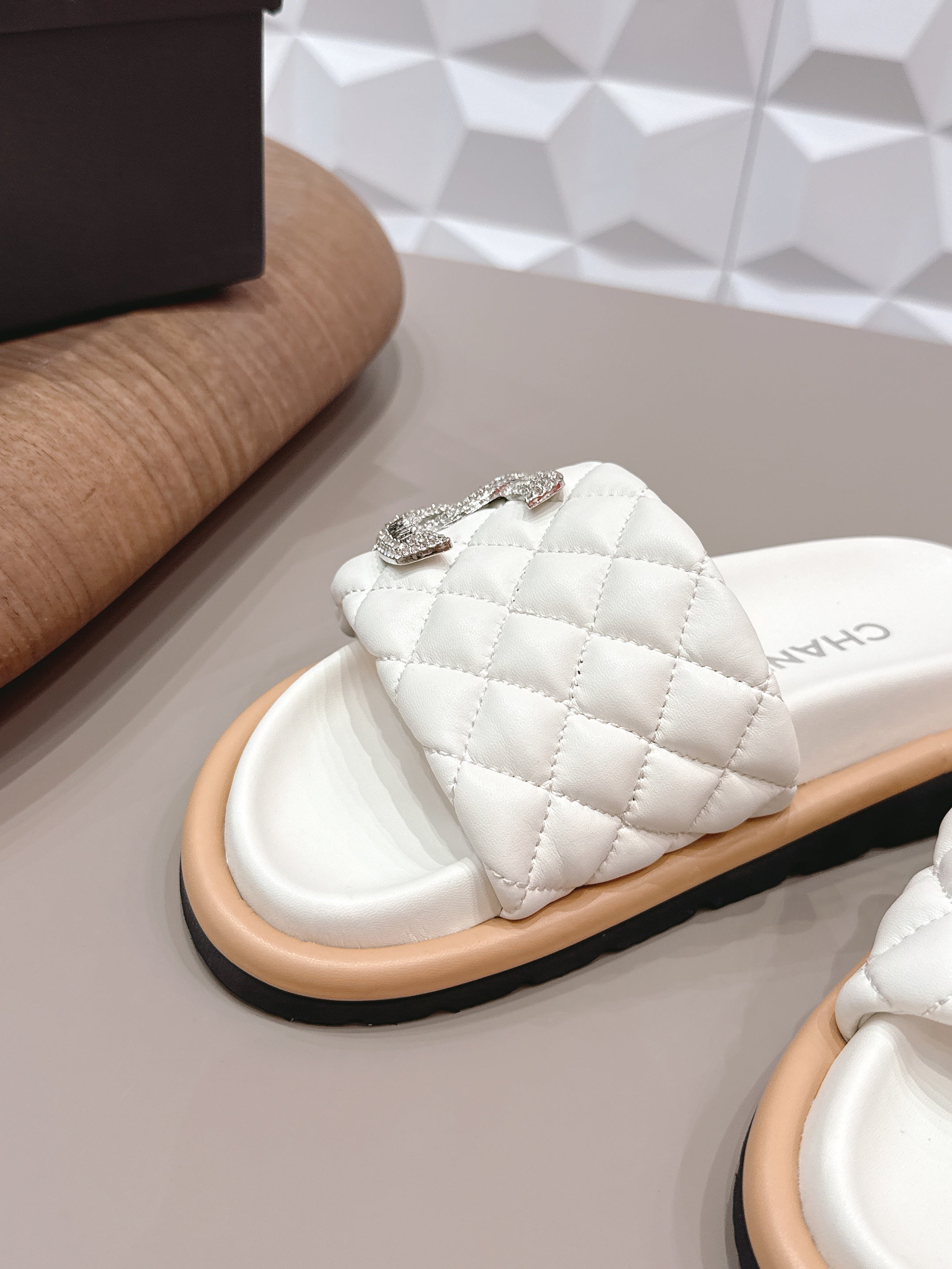 CC 26s Sandals Double C Buckle White Quilted Leather 613270