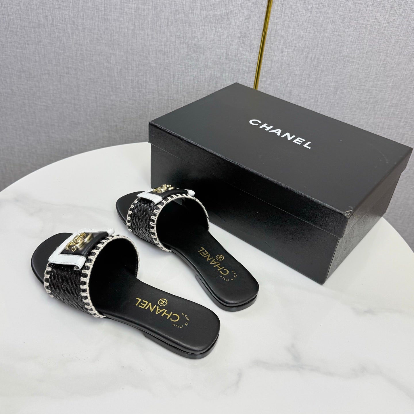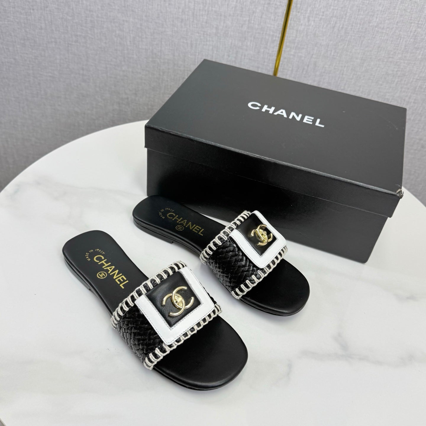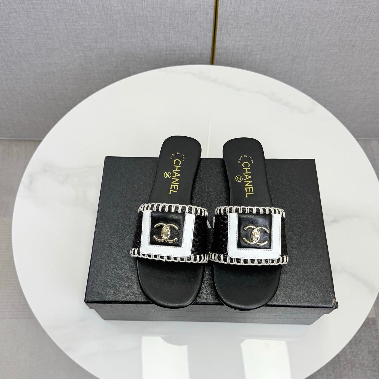 CC 26s Slipper Black White Sheepskin Tweed 620278