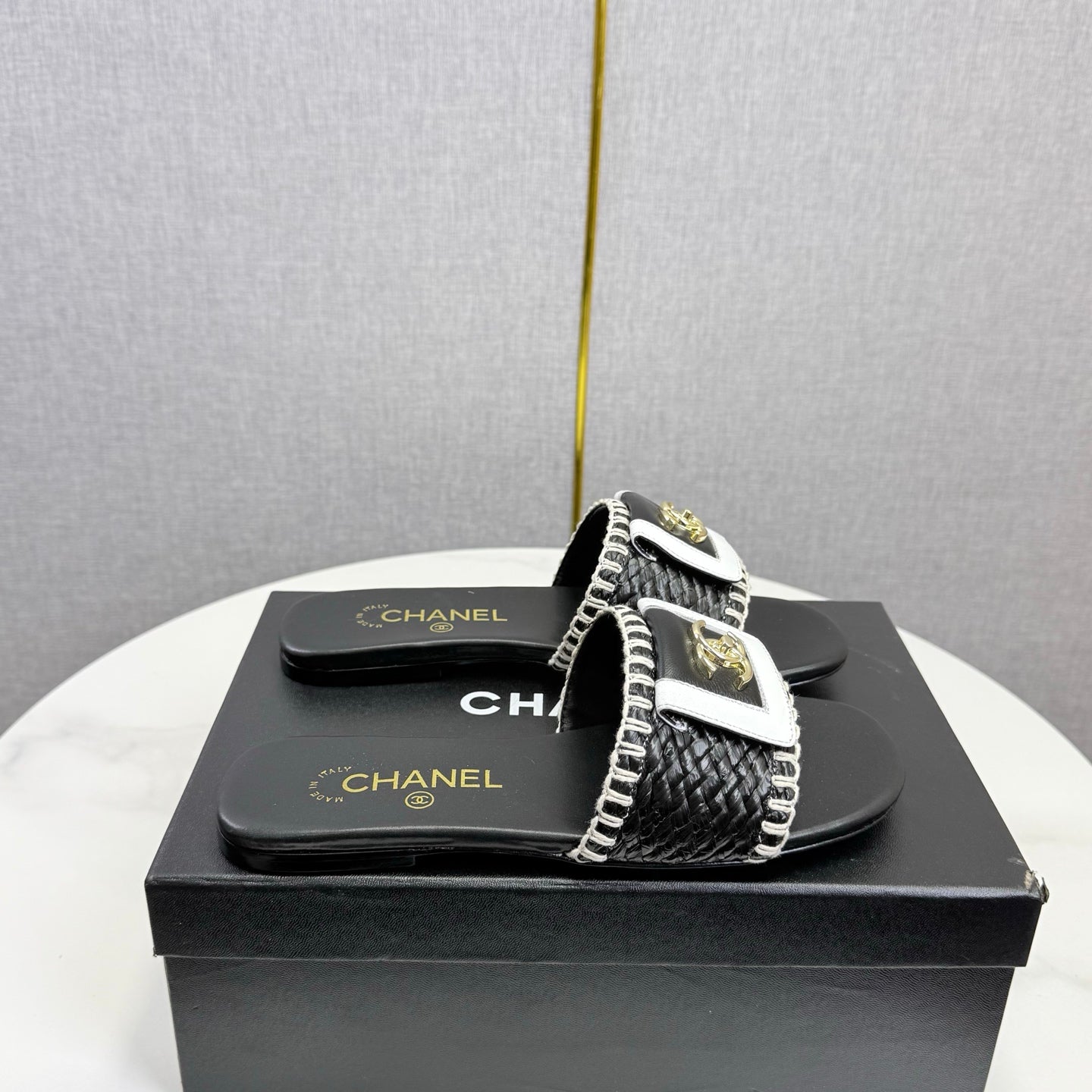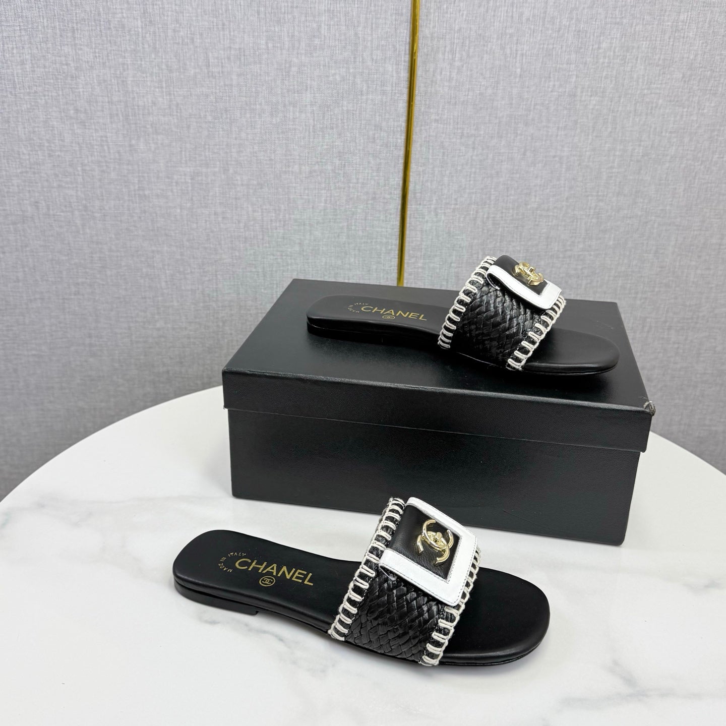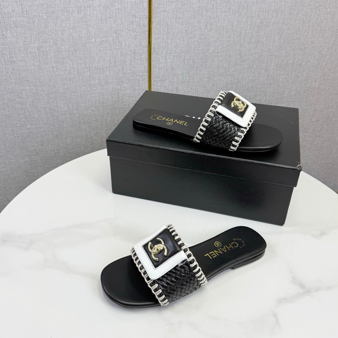 CC 26s Slipper Black White Sheepskin Tweed 620278
