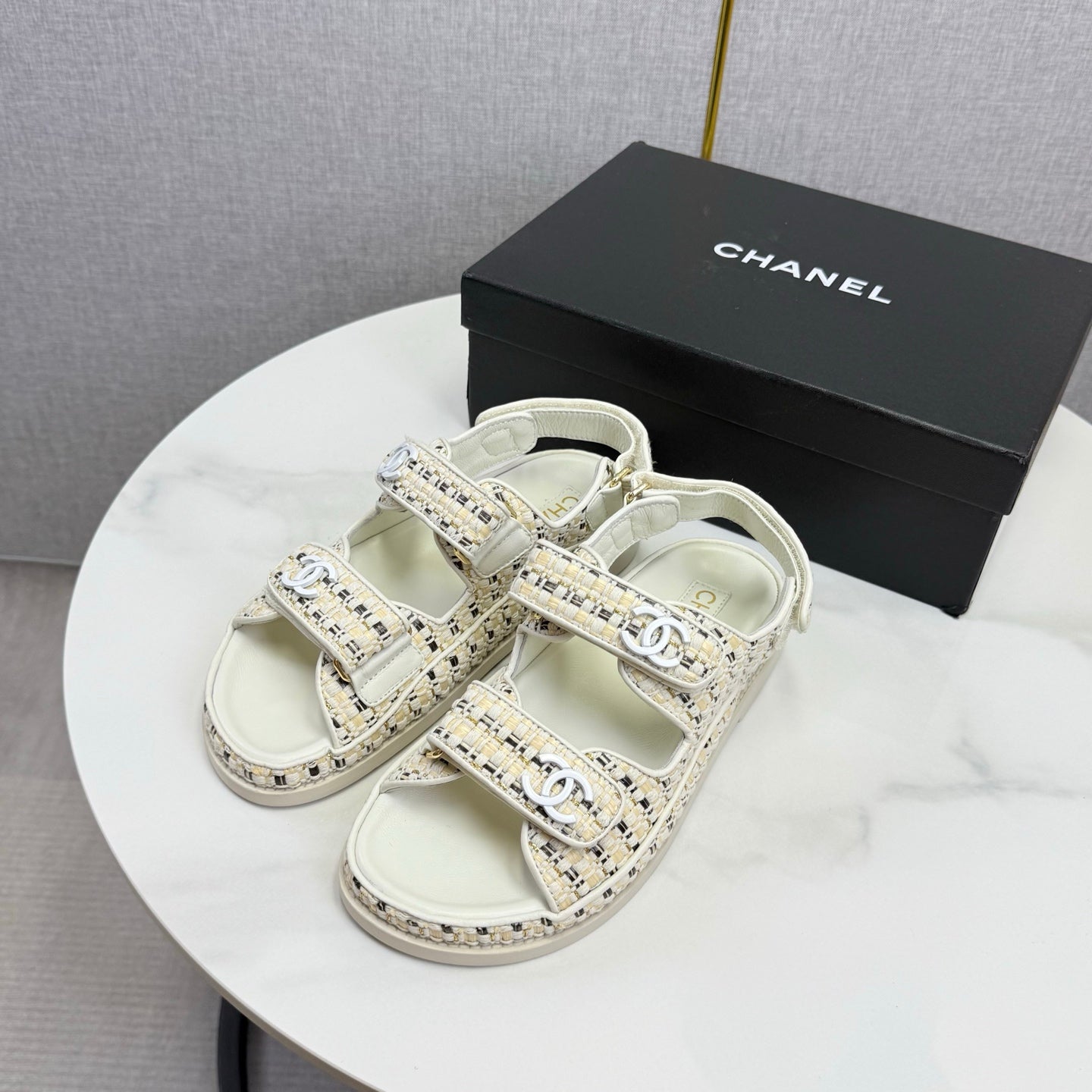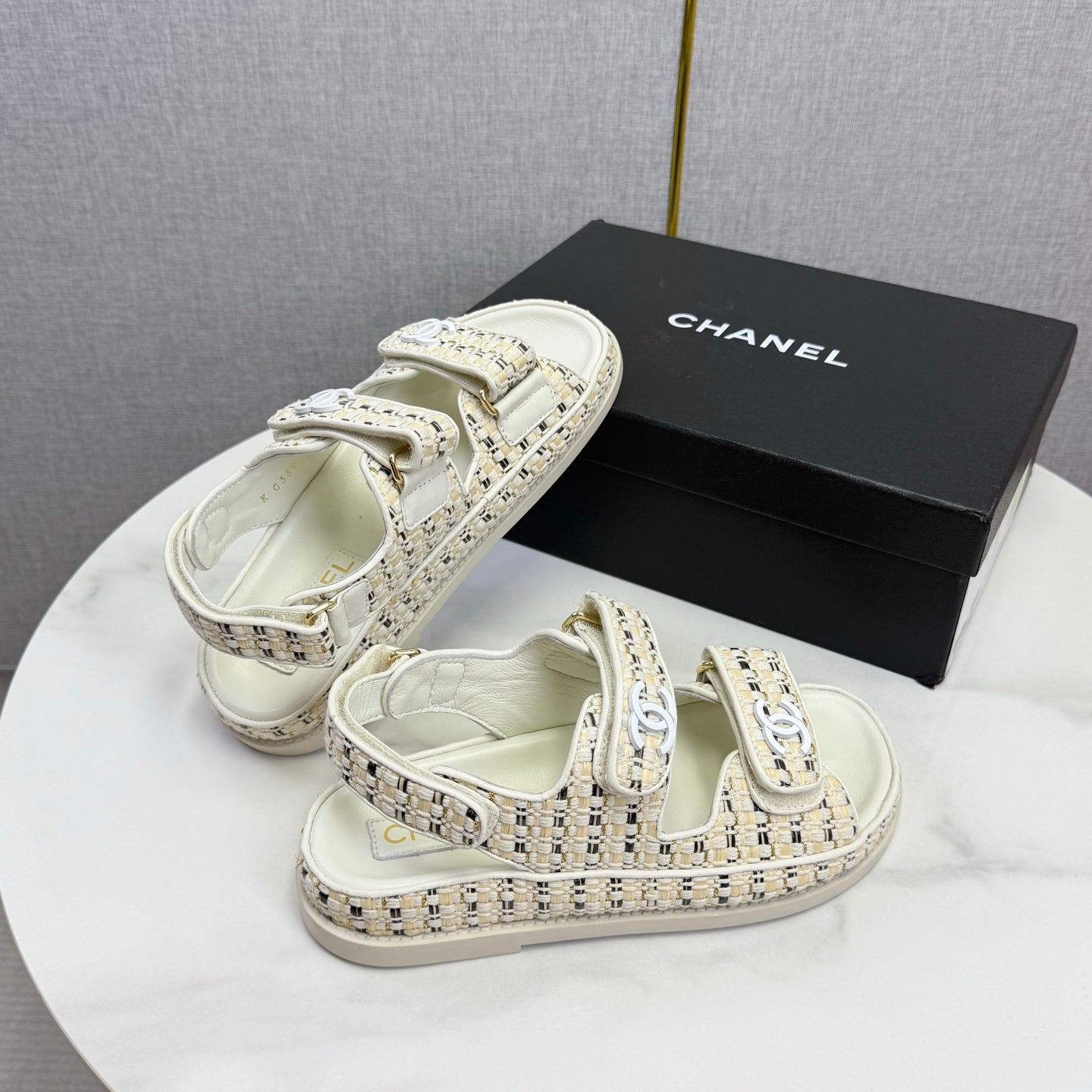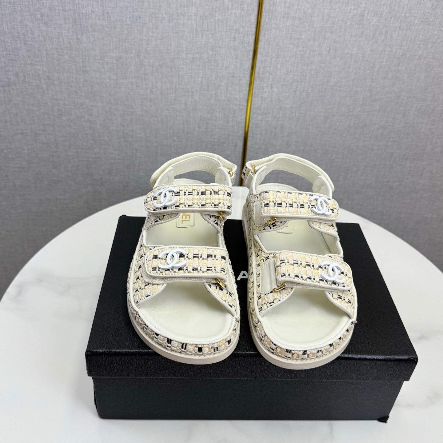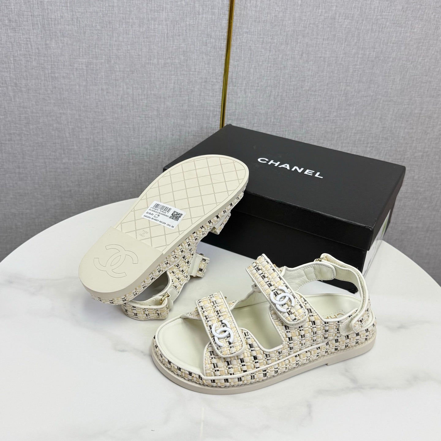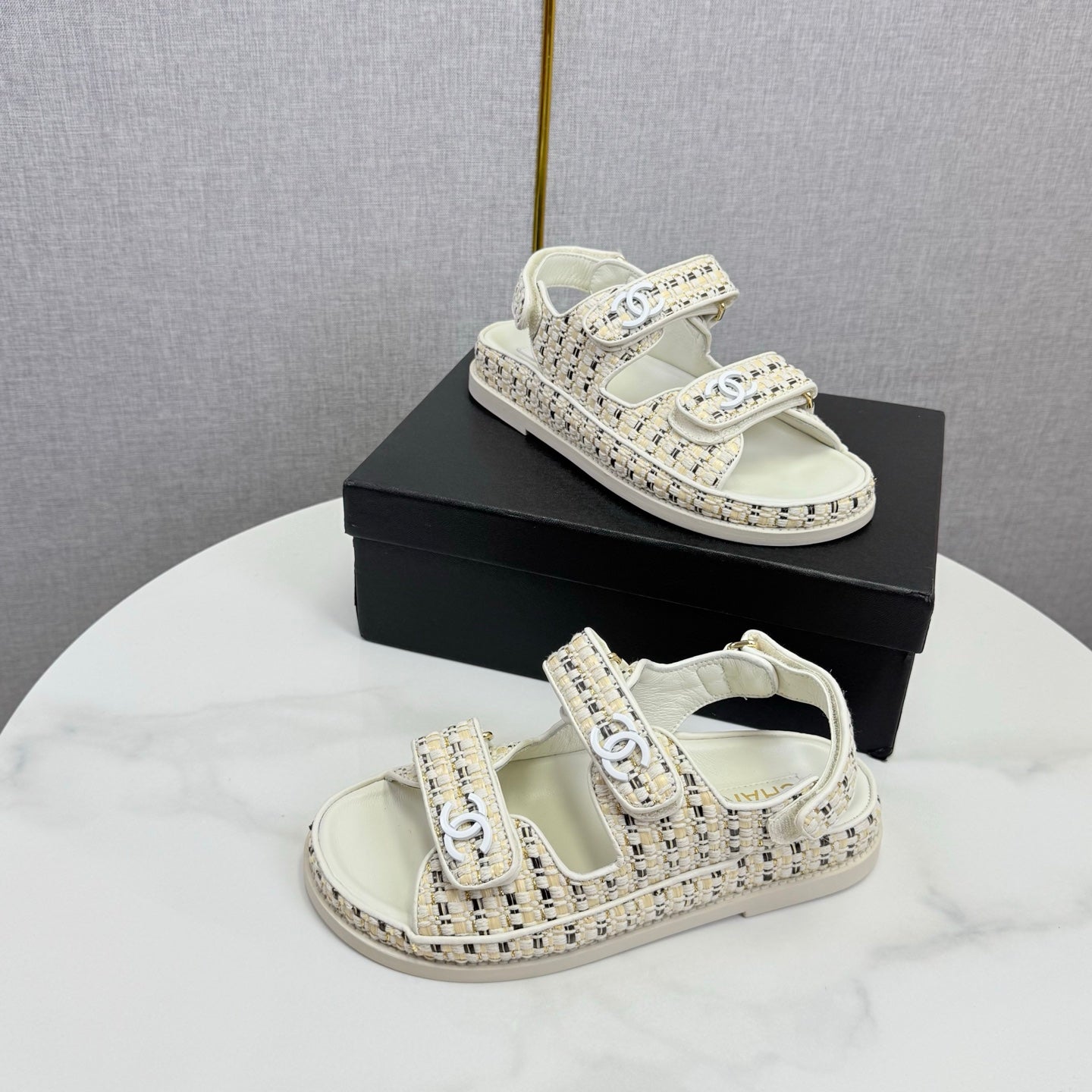 CC Dad Sandal Ivory Black Tweed Sheepskin 620124