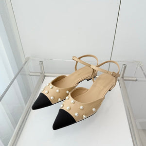 CC T-Strap Kitten Heels Beige Black Sheepskin 619975