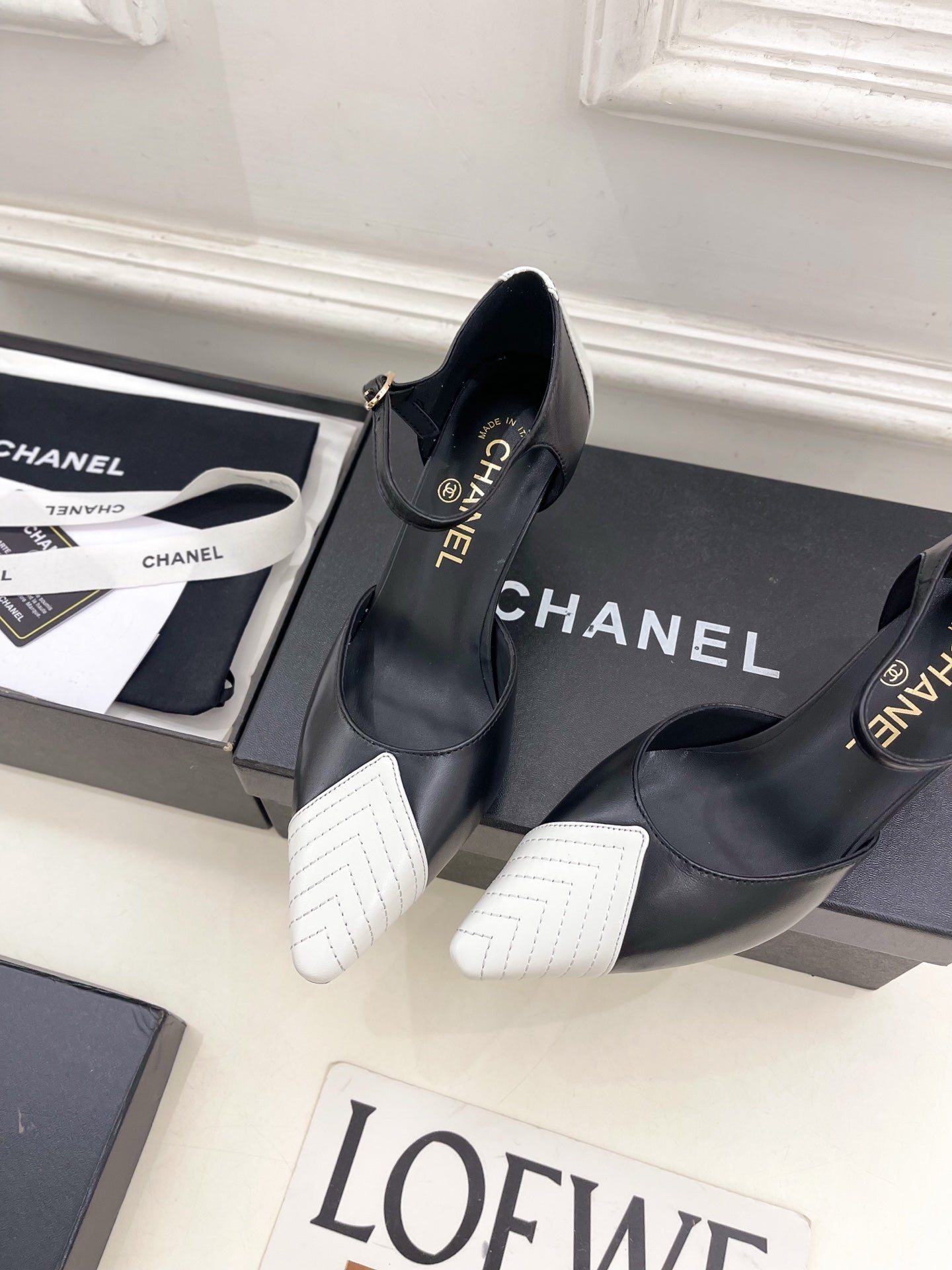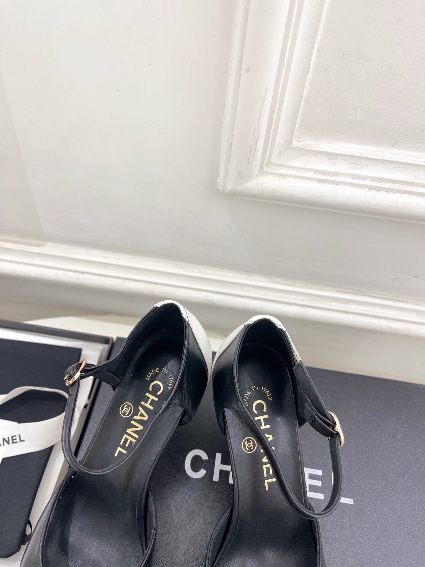 CC 26 SS Double C Slingback 7.5cm White Black Calfskin 586934