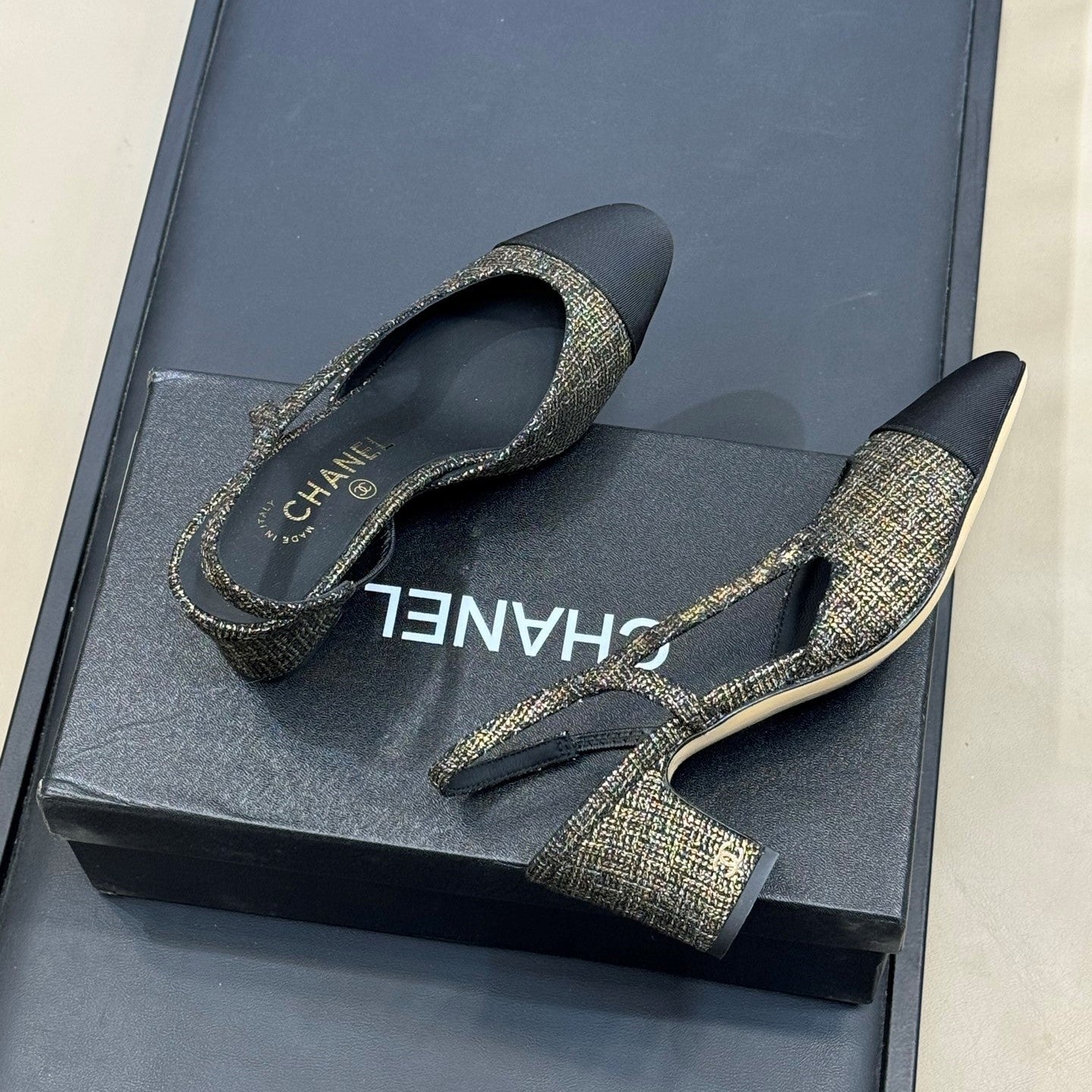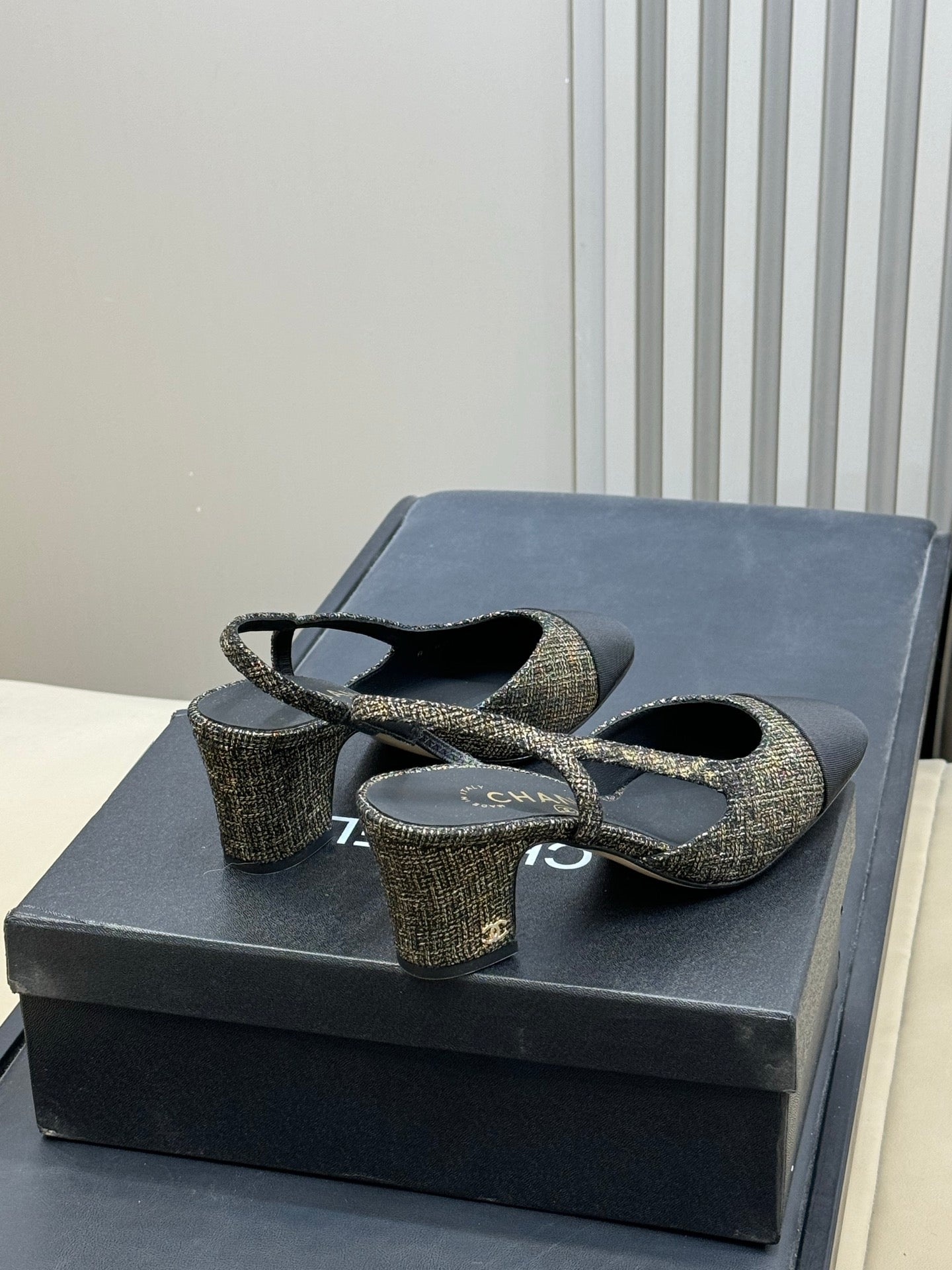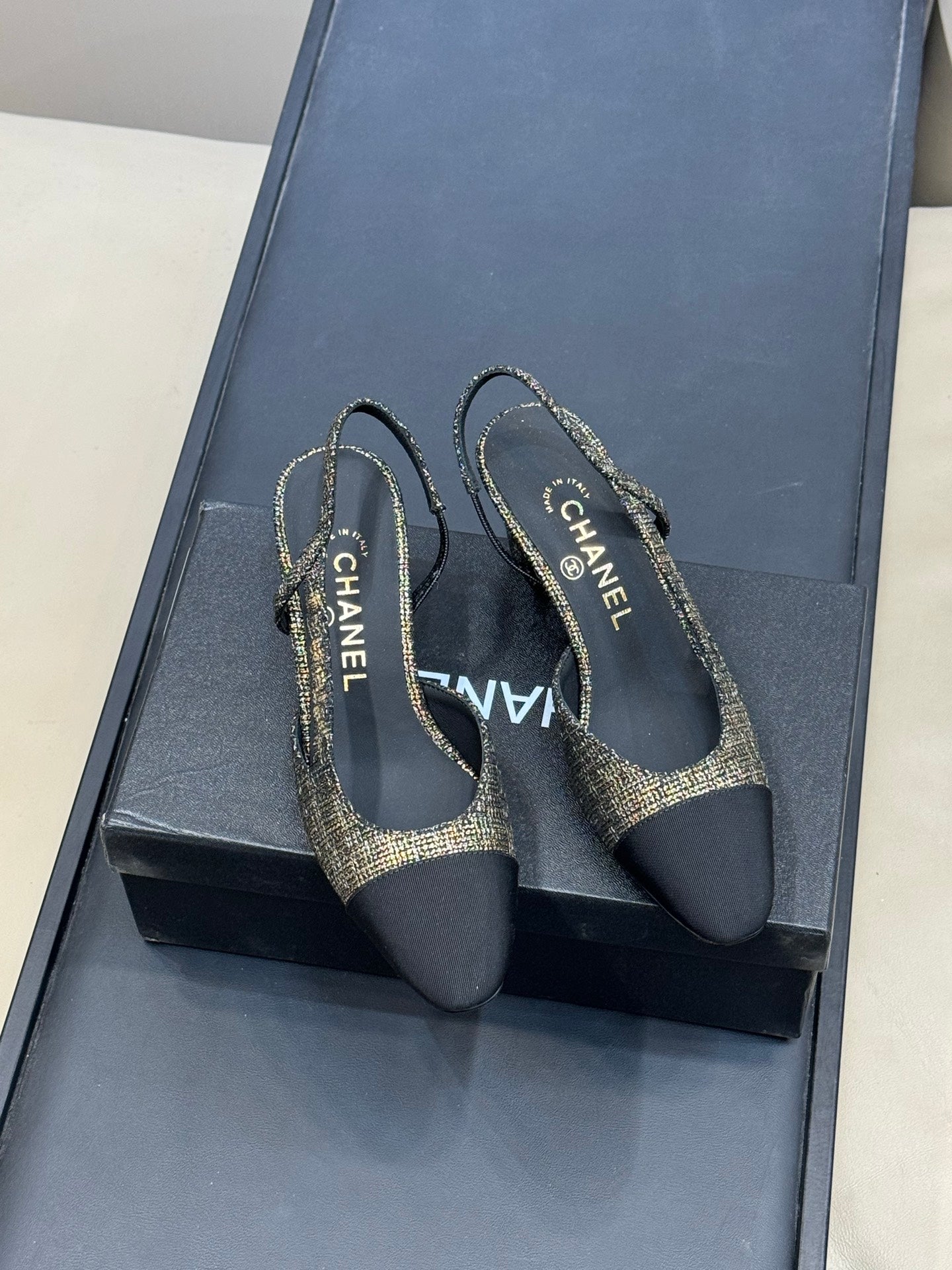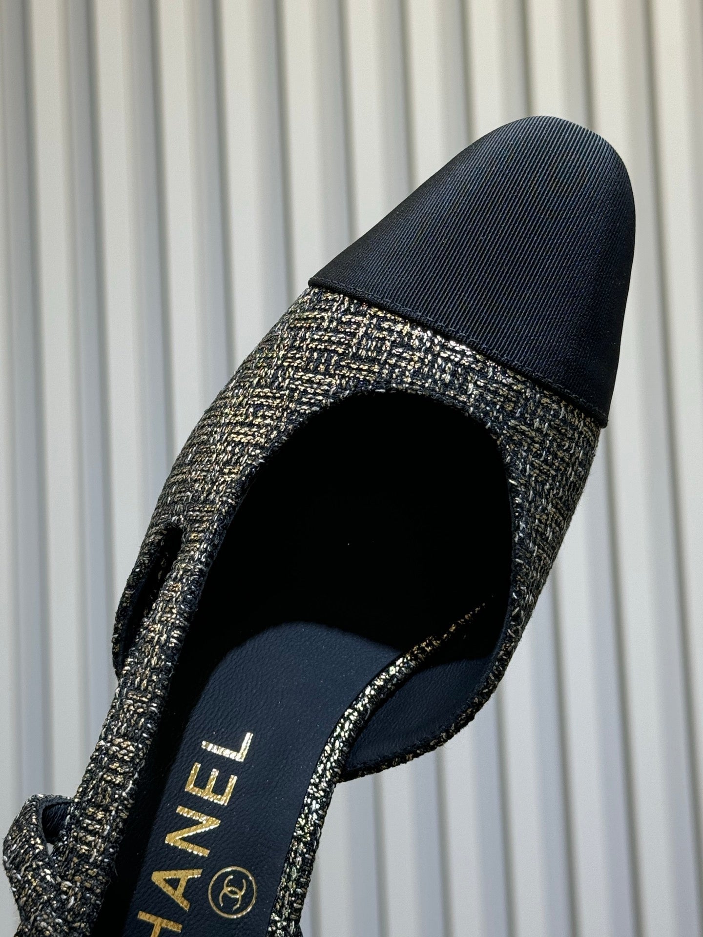 CC 26ss Slingback 7cm Black Gold Tweed Velvet 623156