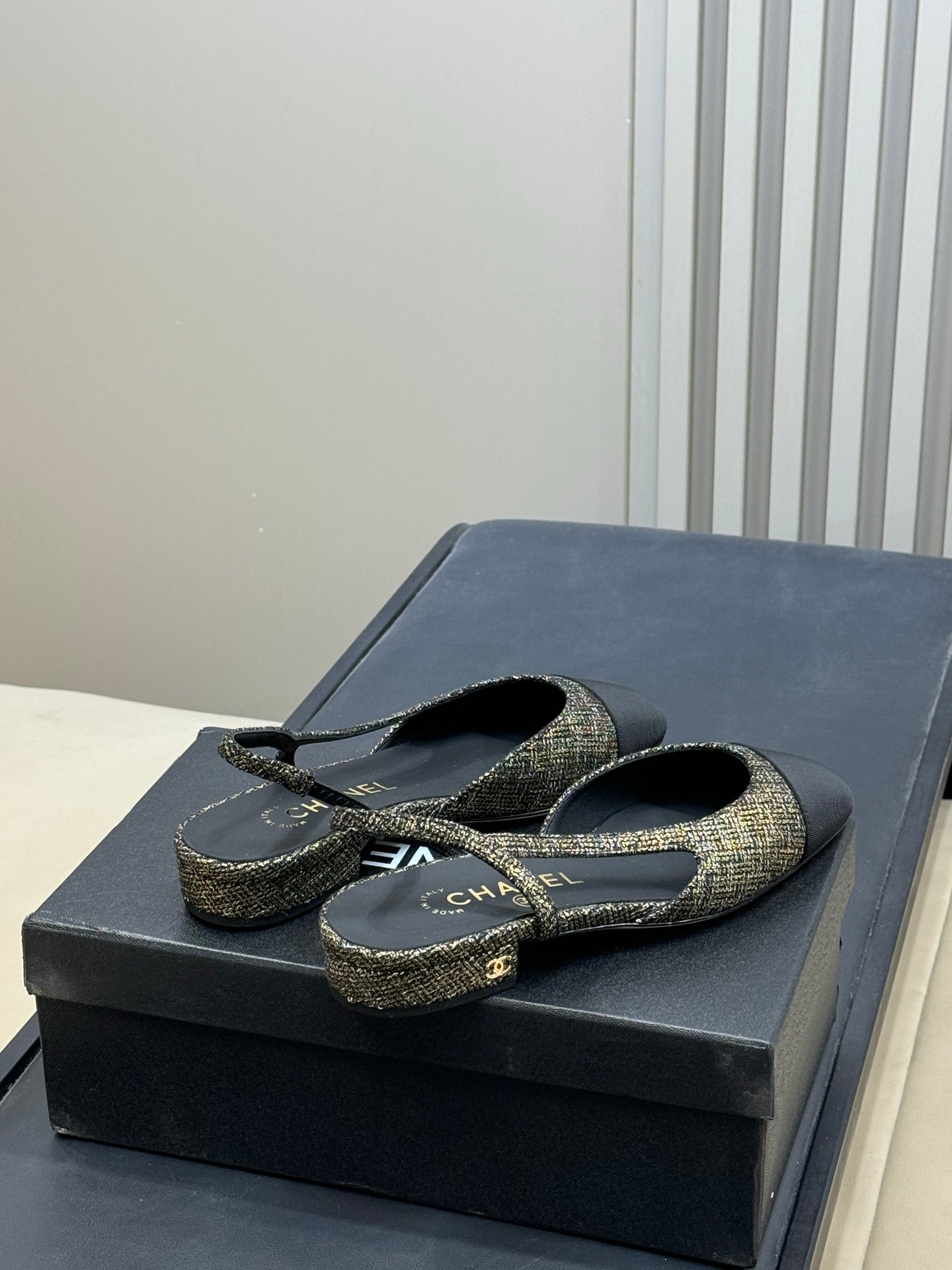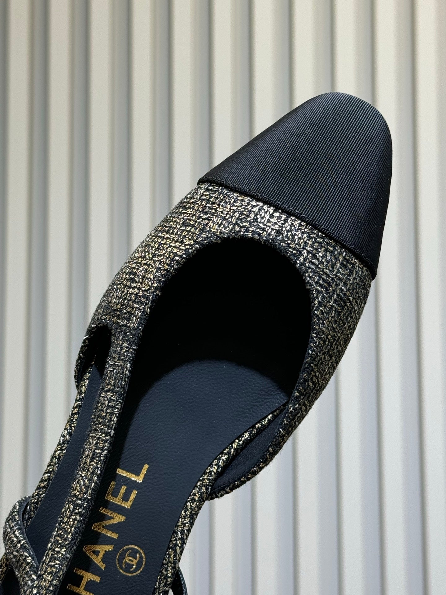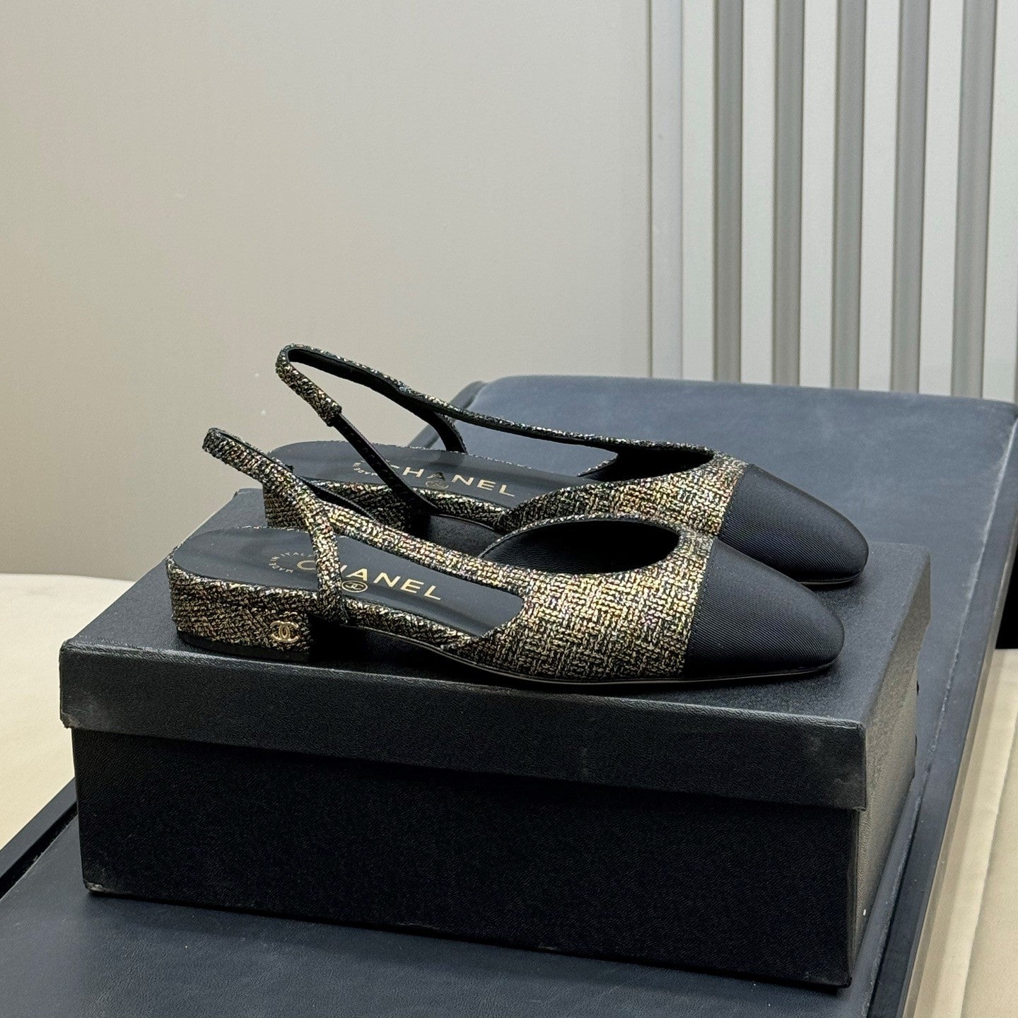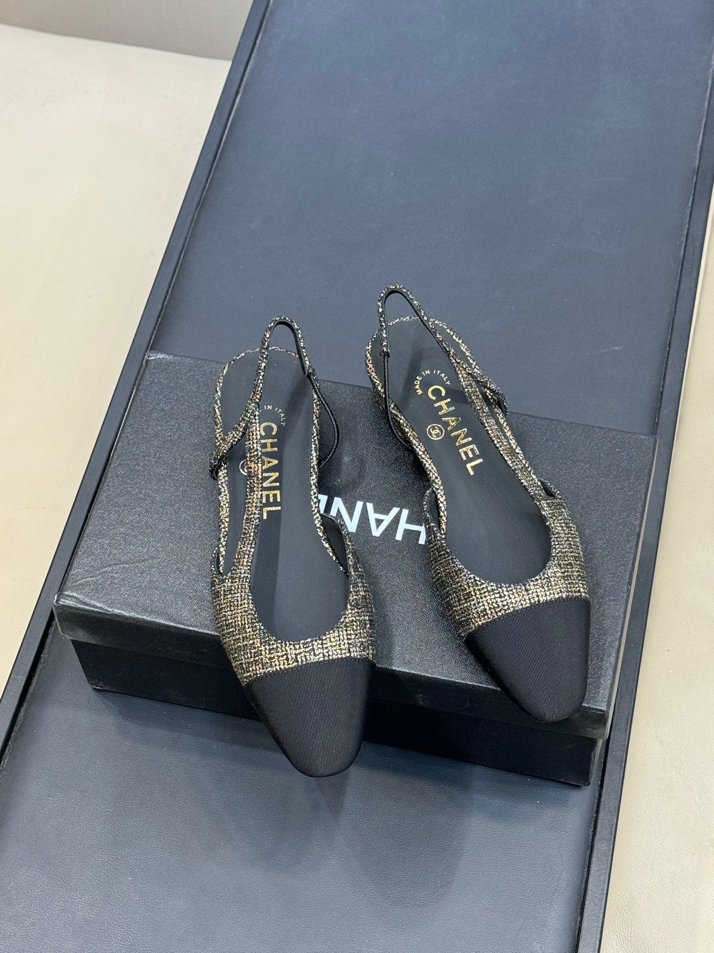 CC 26ss Slingback Black Gold Tweed Velvet 623164