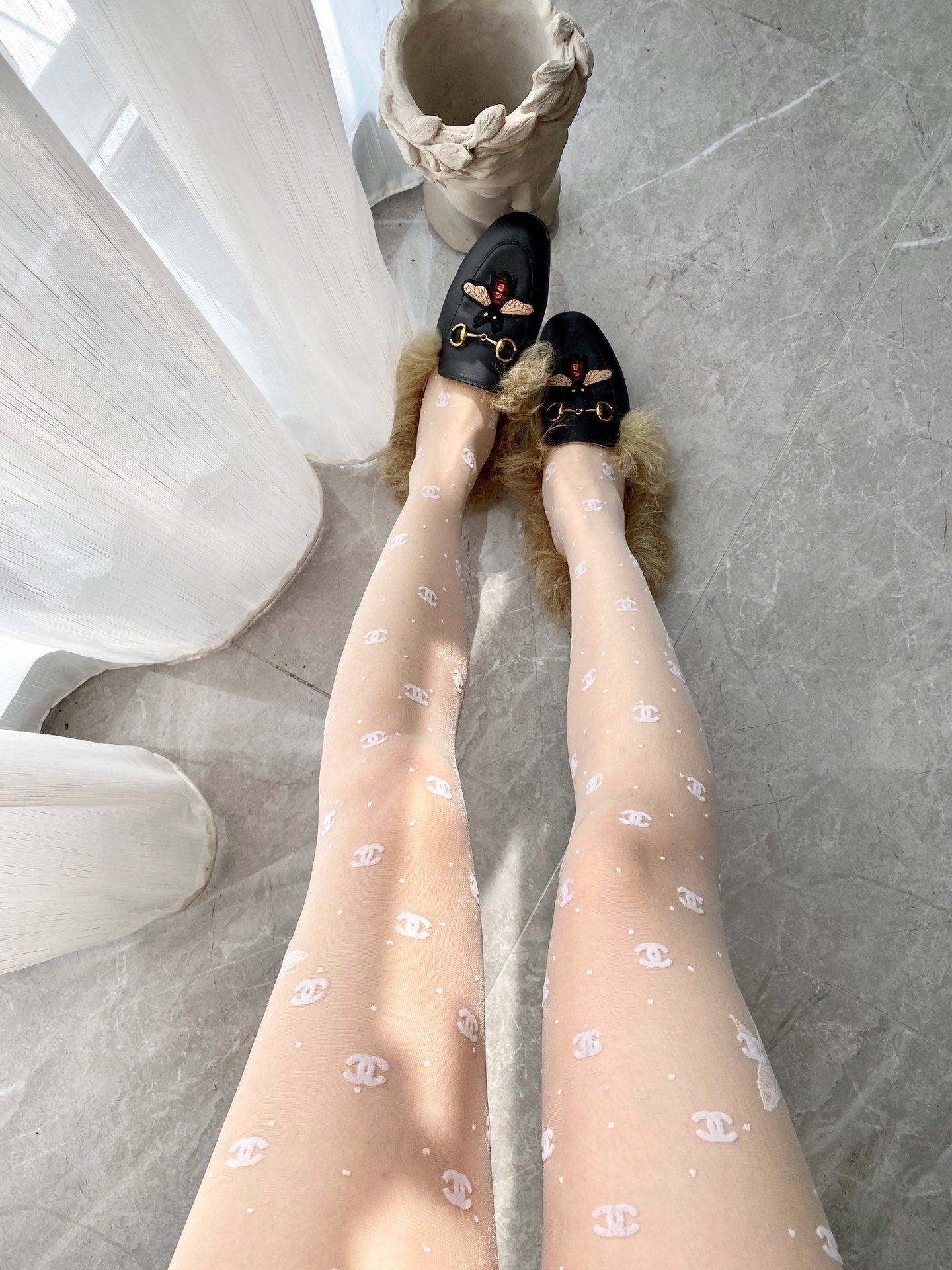 CC polka dot butterfly fishnet pantyhose