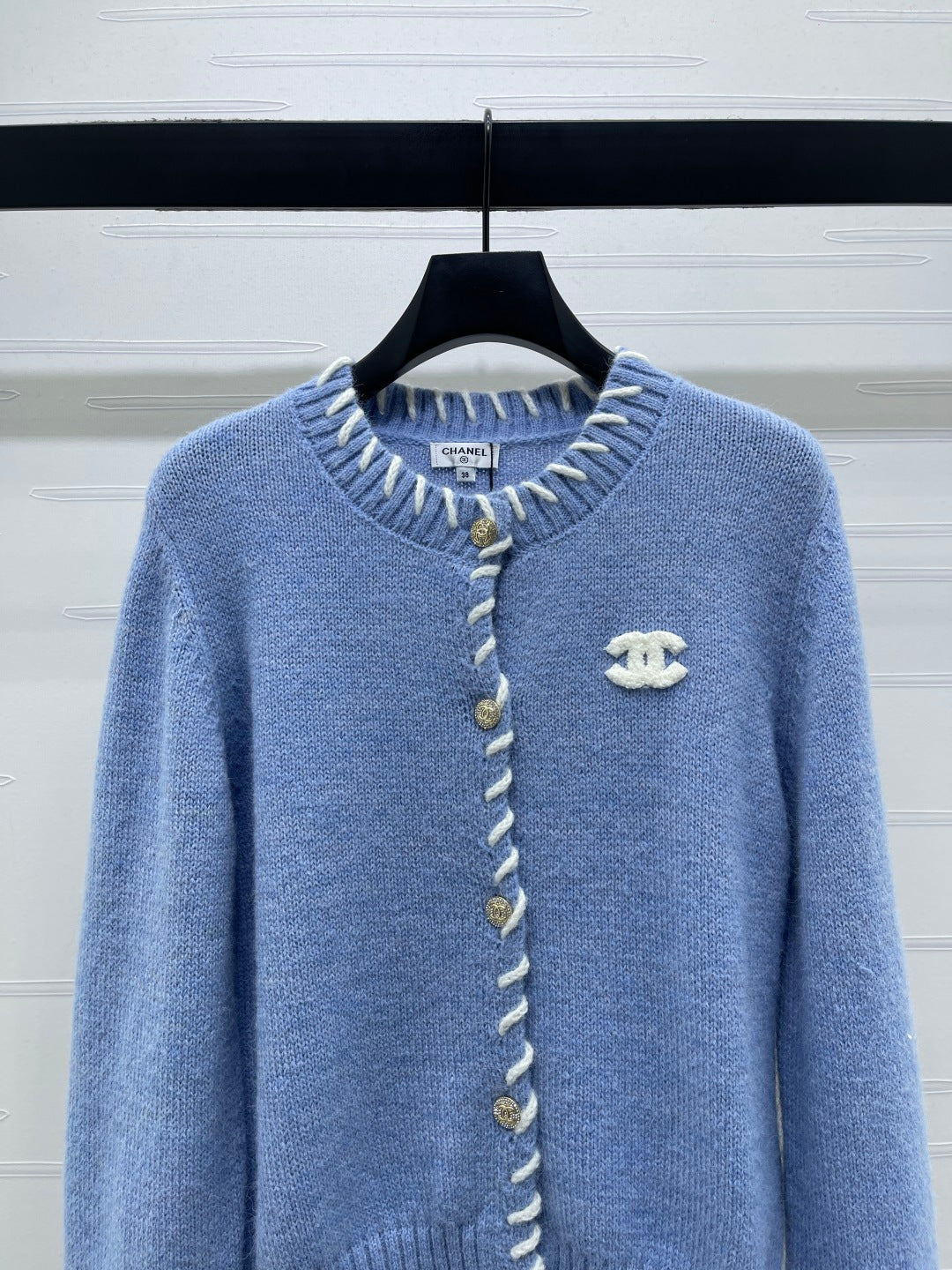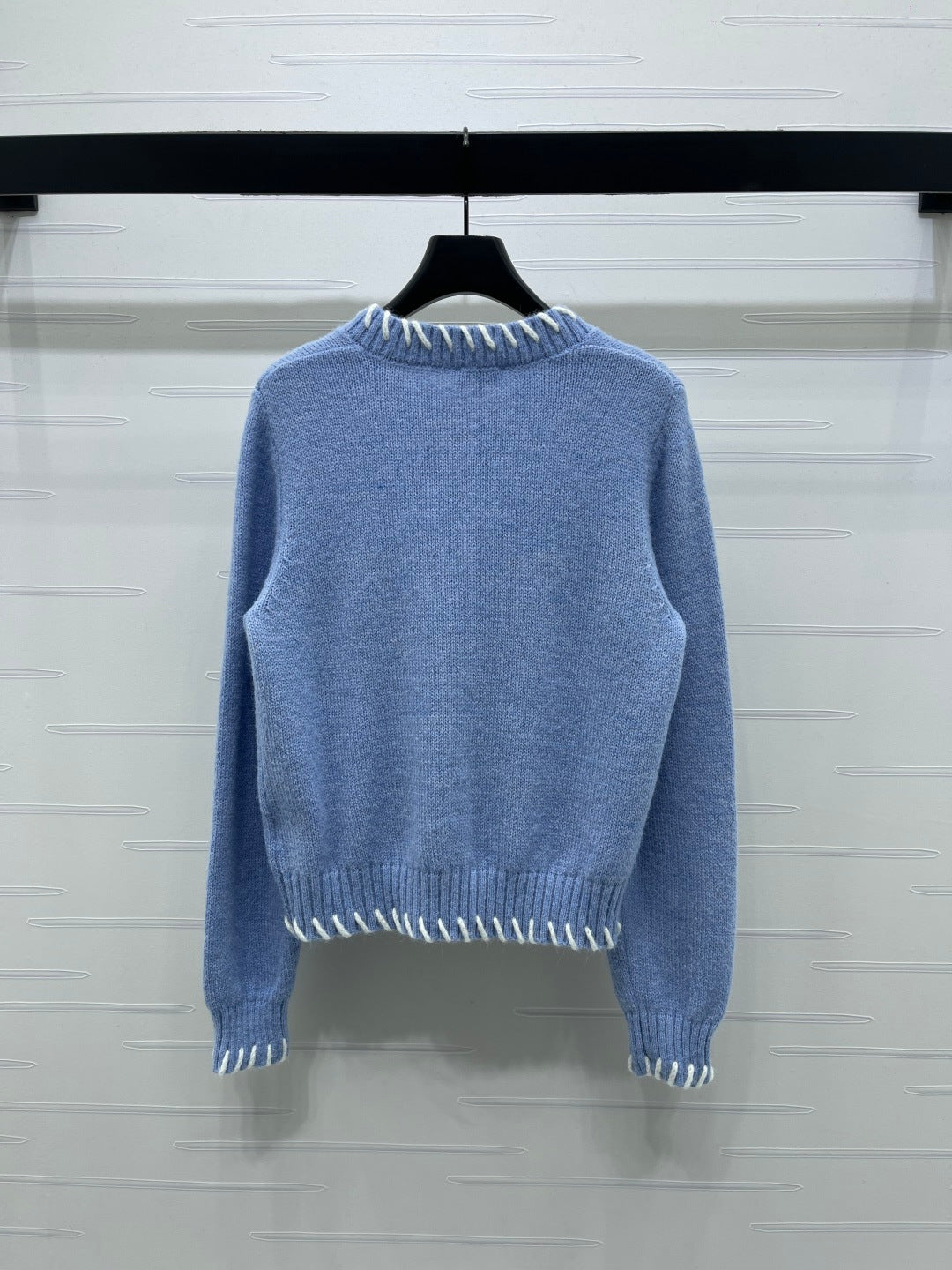 CC 26s Crochet-Trimmed Crew Neck Cardigan Blue Knit 343630