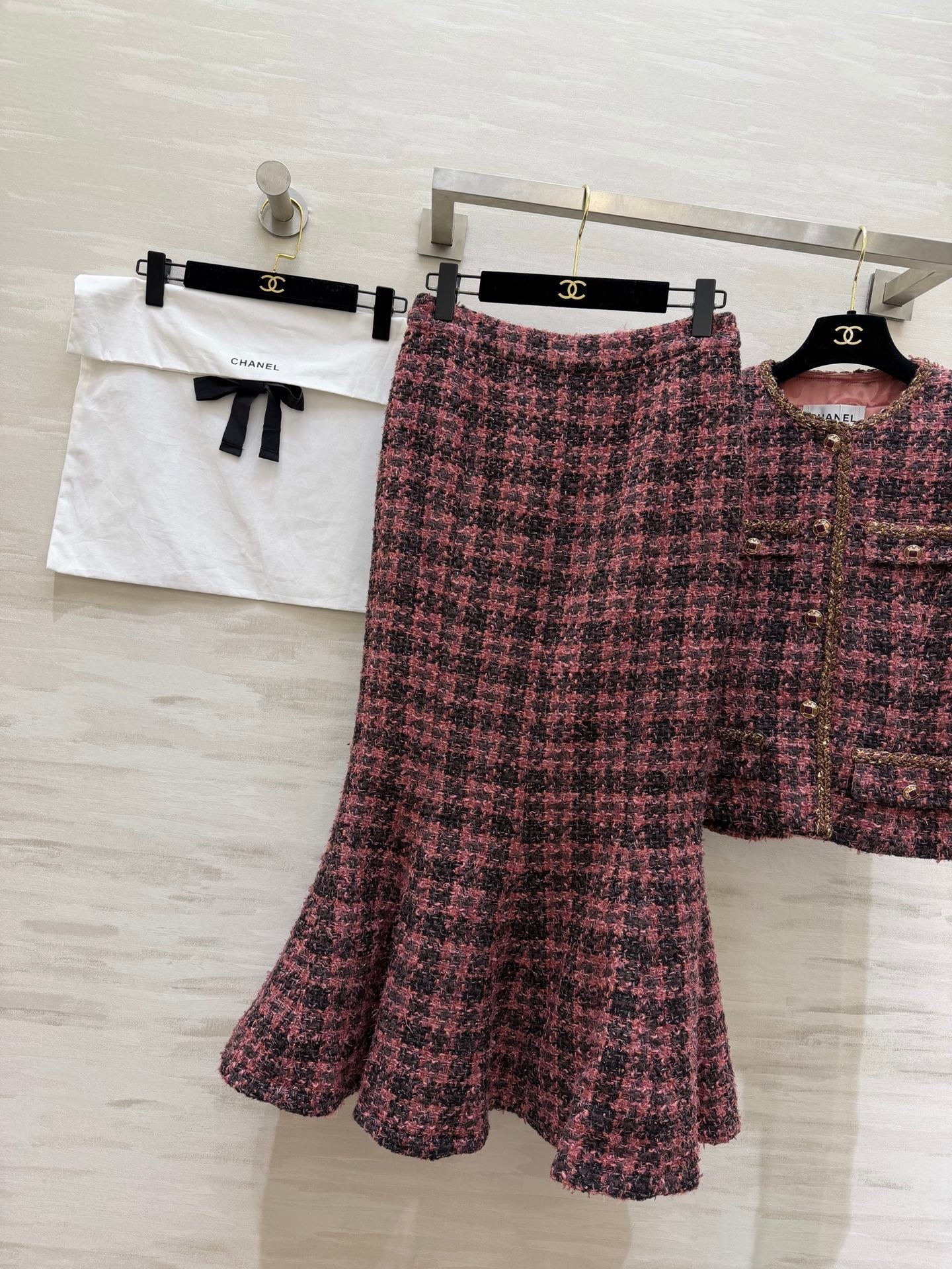 CC Elegant Mermaid Skirt Set Black Light Red Tweed 344704
