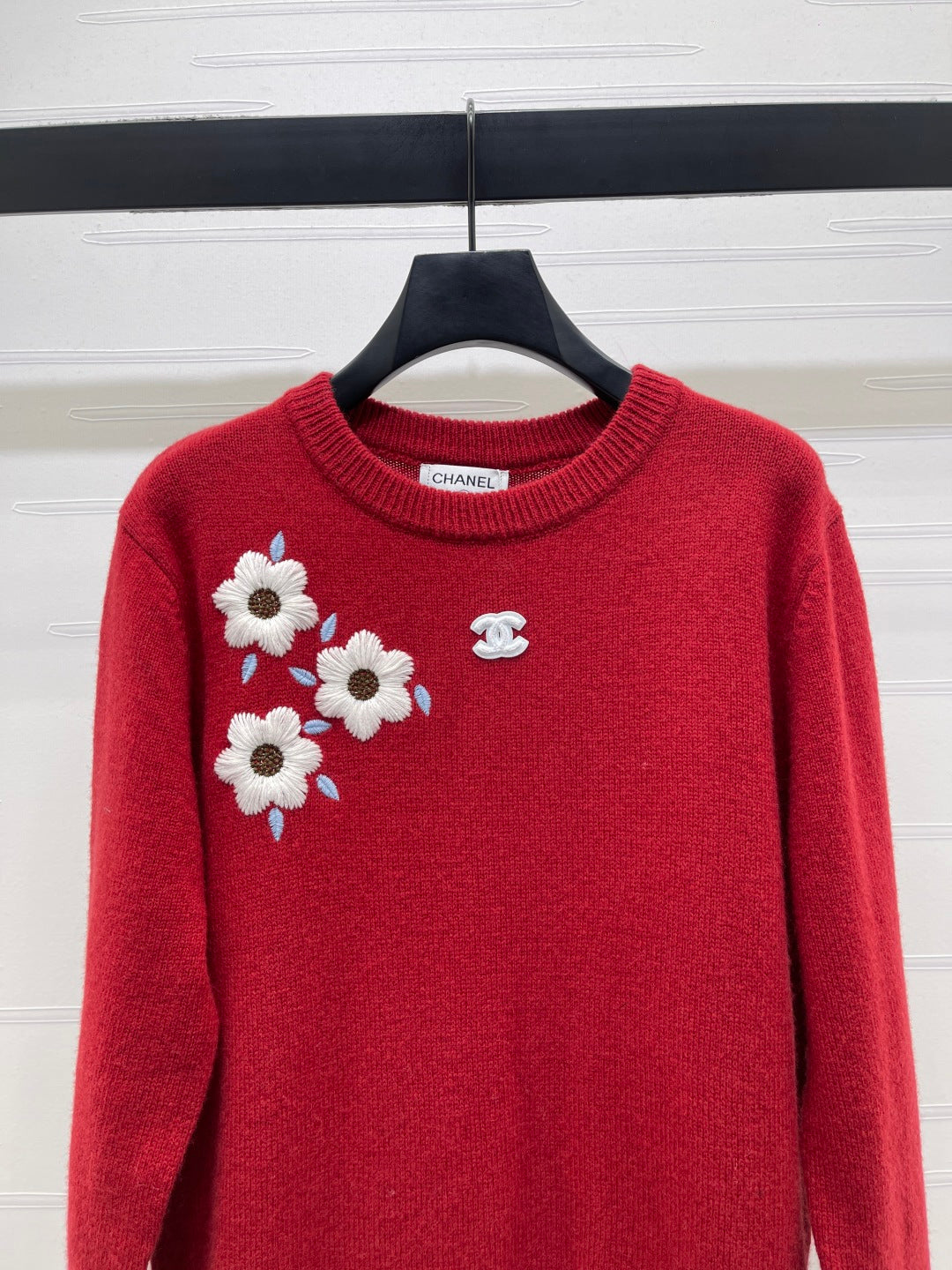 Chanel Floral Patterns Red Sweater Embroidered 340997