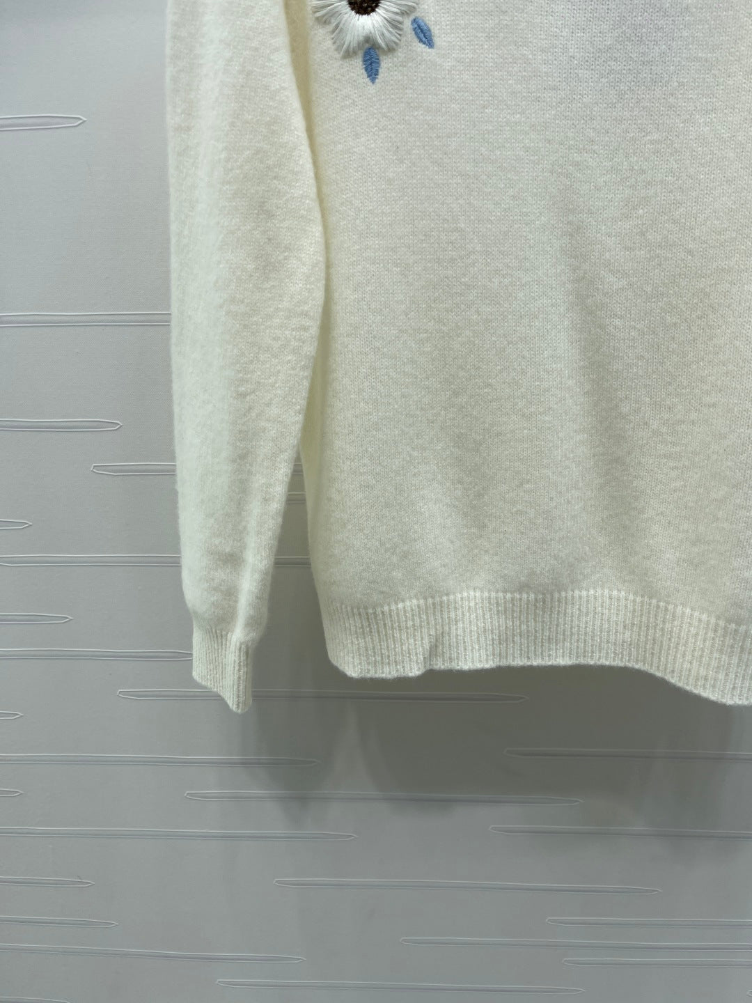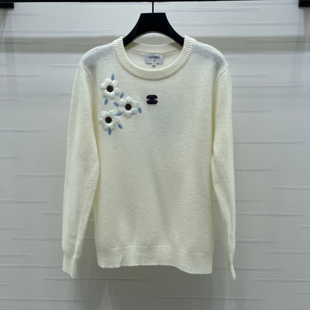Chanel Floral Patterns White Cream Sweater Embroidered 340996