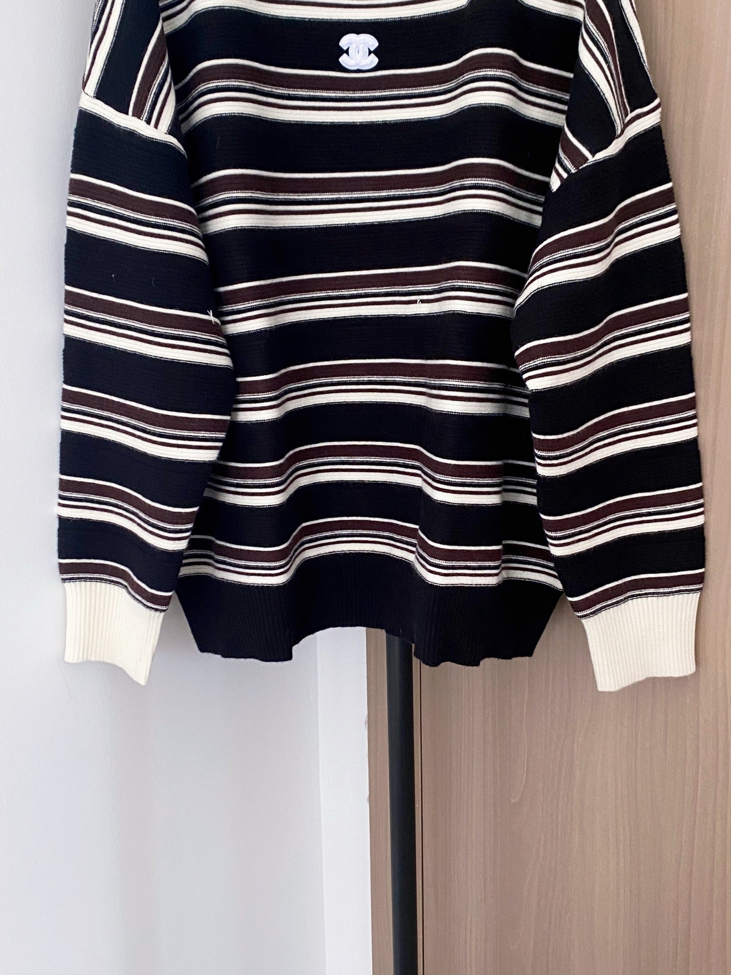 CHANEL TWO-TONE LONG-SLEEVE SHIRT BLACK IVORY 99240