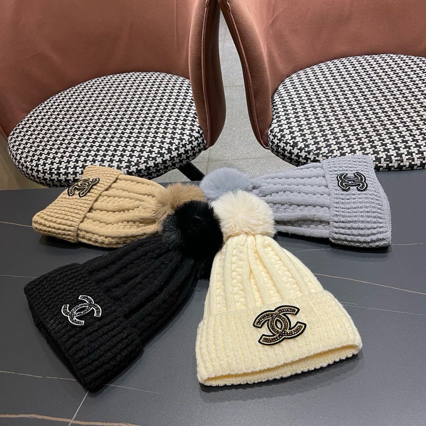 Chanel Knitted Beanie Cream in Fibrous 979986