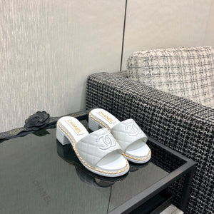 Chanel 26C Open-Back High-Heel Sandals White Black in Leather 615700
