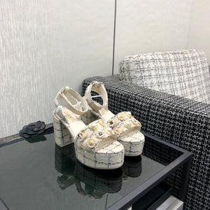 Chanel 26C Camellia Wood Grain Platform Sandals White in Leather 615916