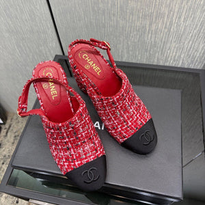 Chanel 26C Open-Back High-Heel Sandals Red Black in Leather 615702