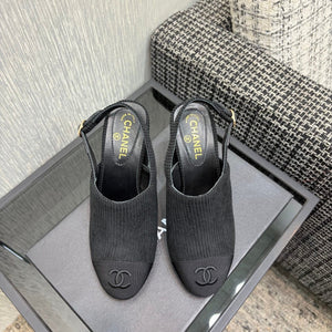 Chanel 26C Open-Back High-Heel Sandals Black in Leather 615703