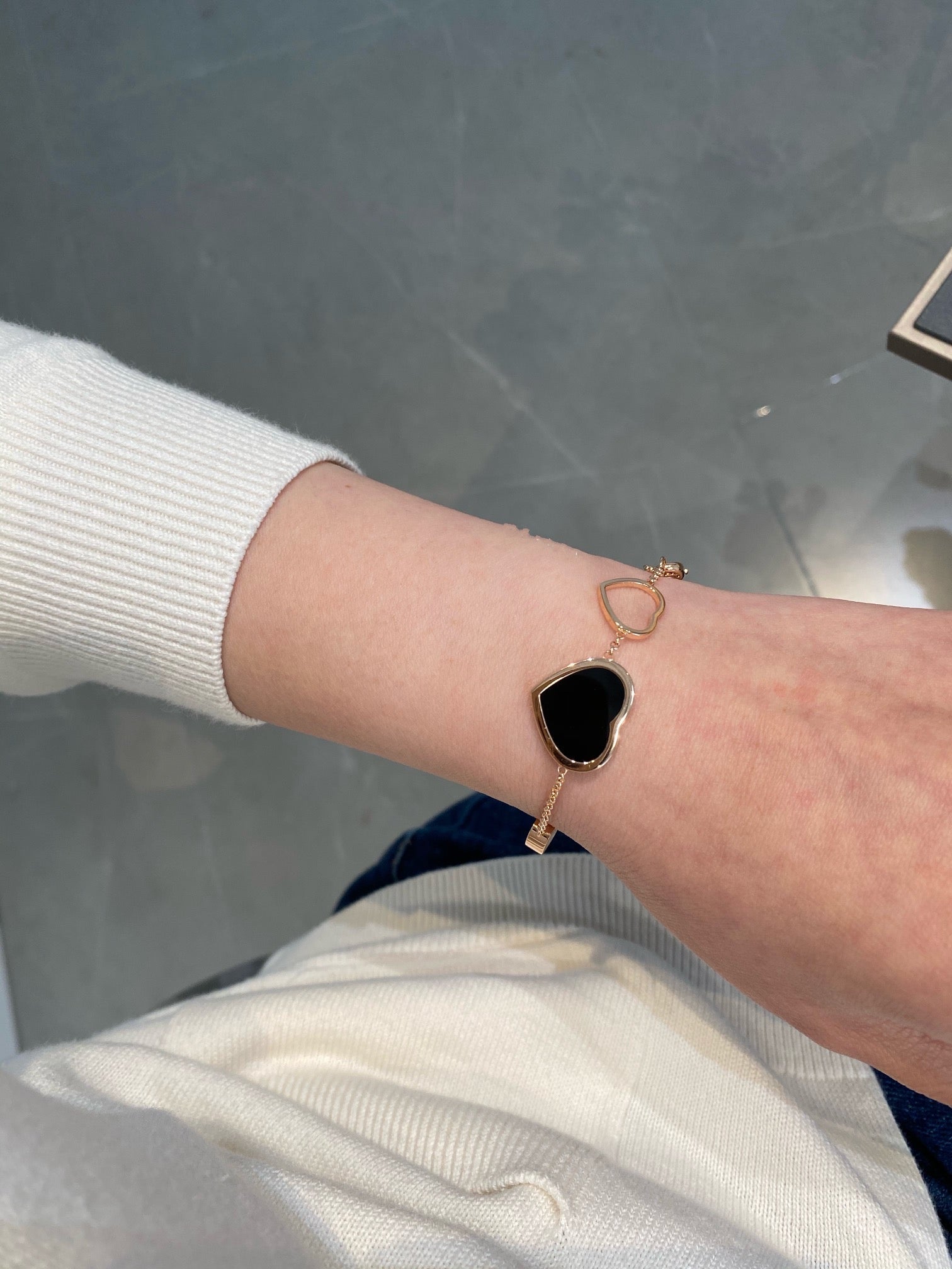 HAPPY HEART ONYX PINK GOLD BRACELET