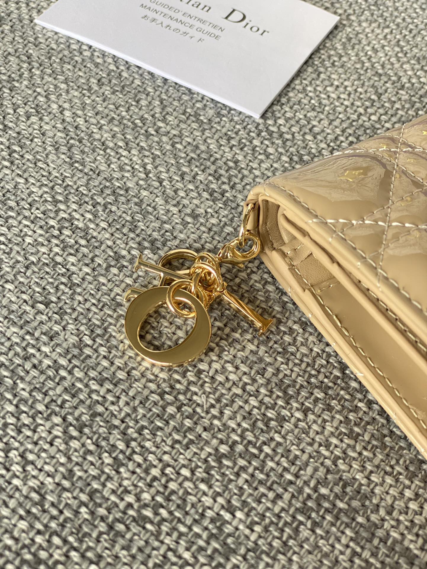 CD Caro 11cm Compact Wallet Shiny Beige Calfskin