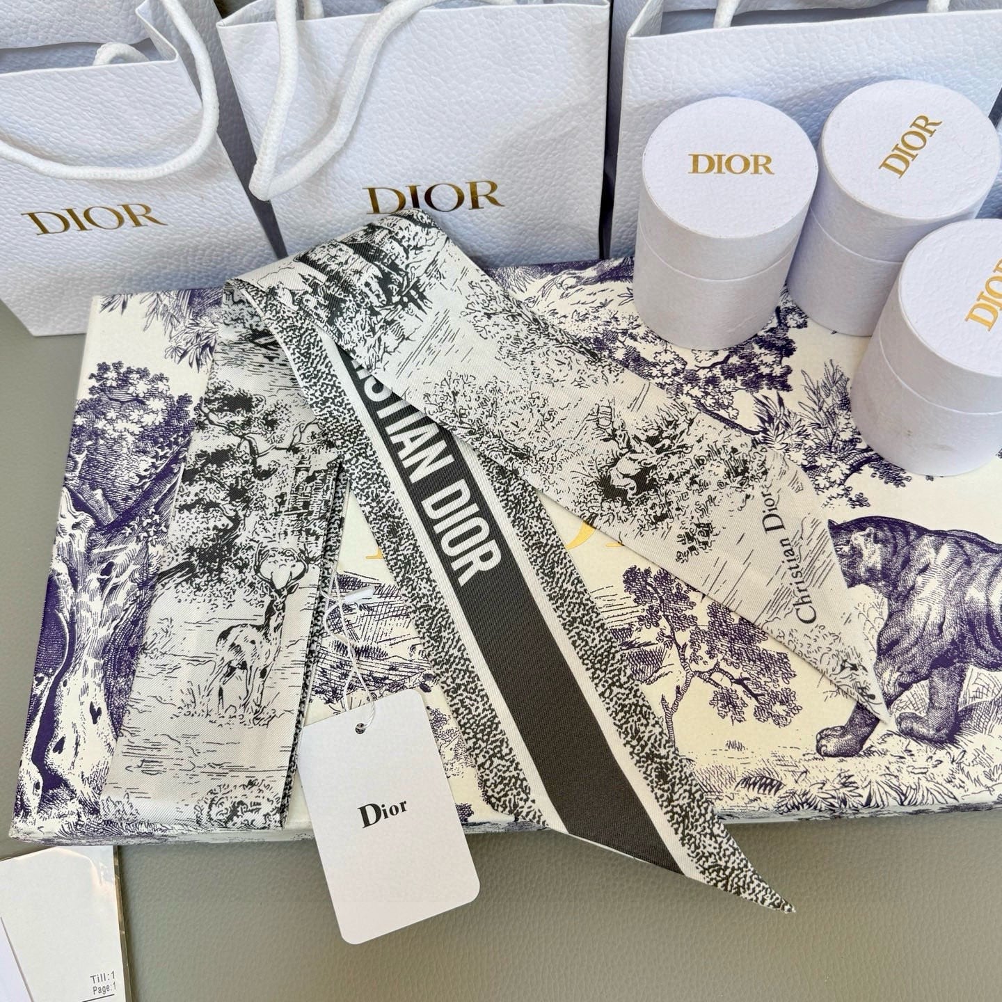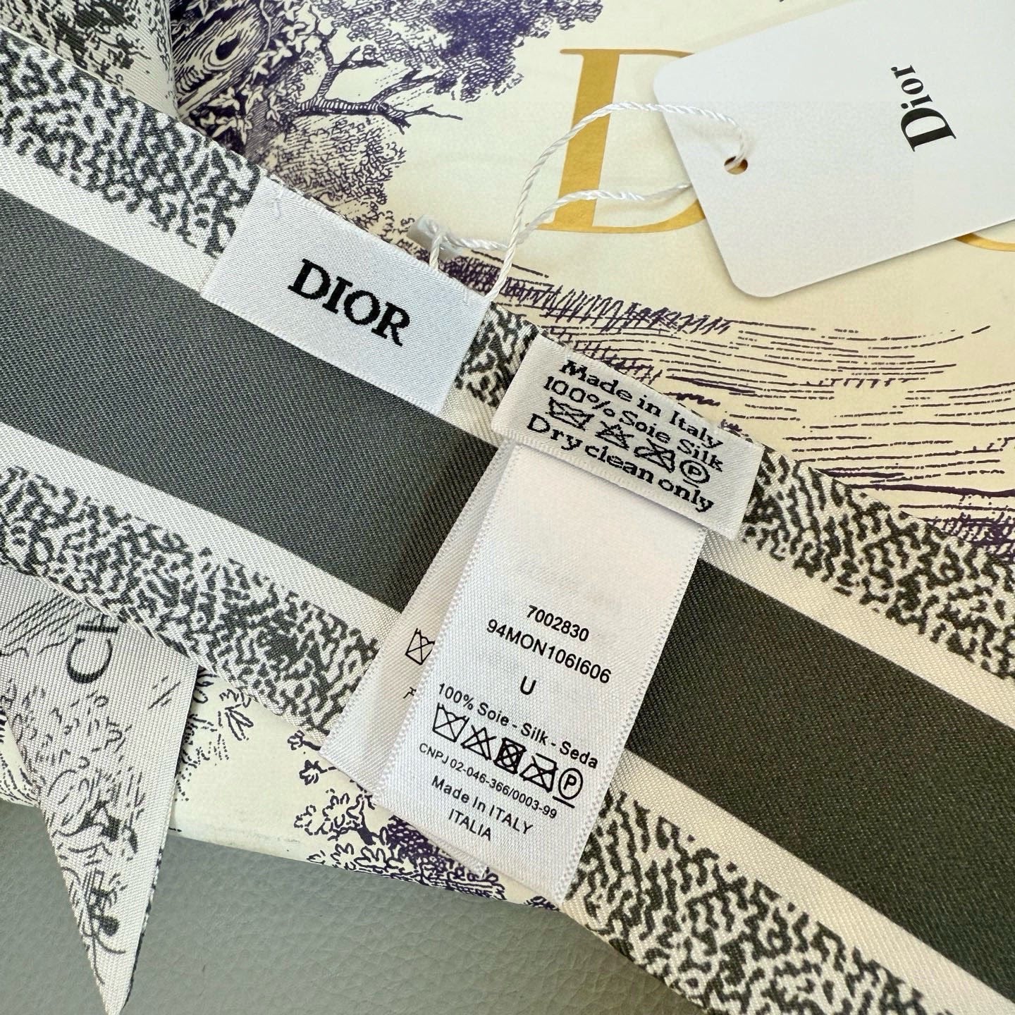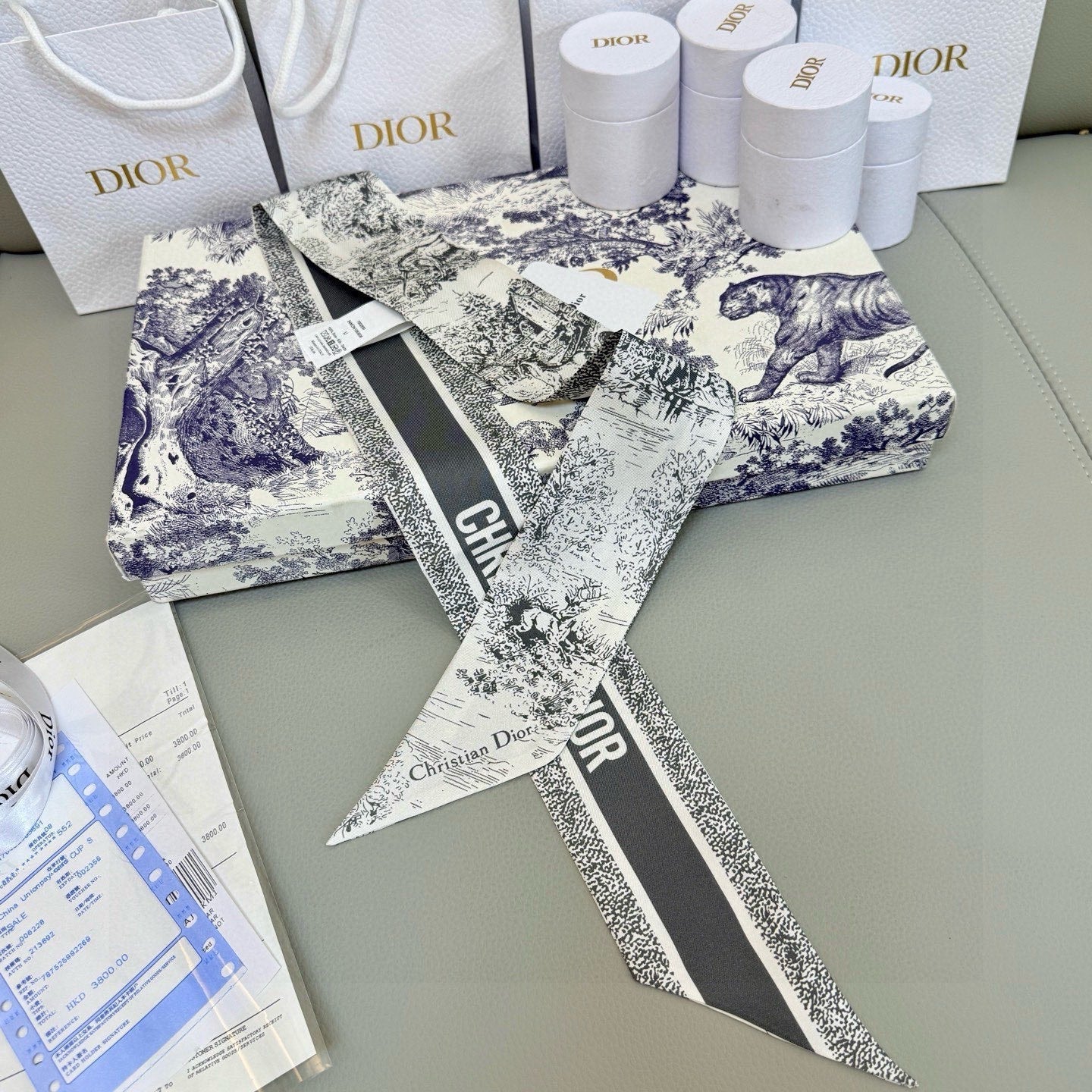 CD Twilly Mini Scarf 105cm Black White Mulberry Silk 976492