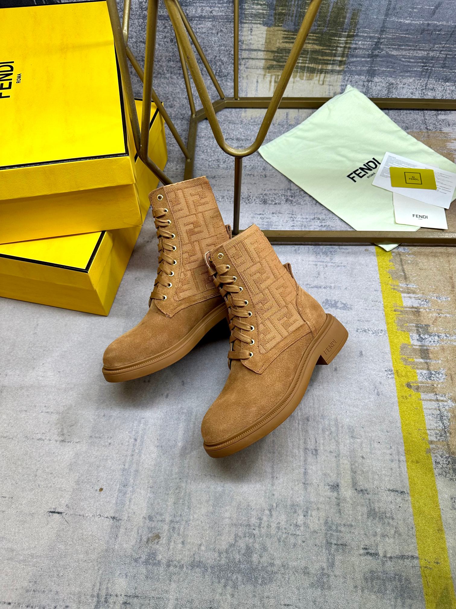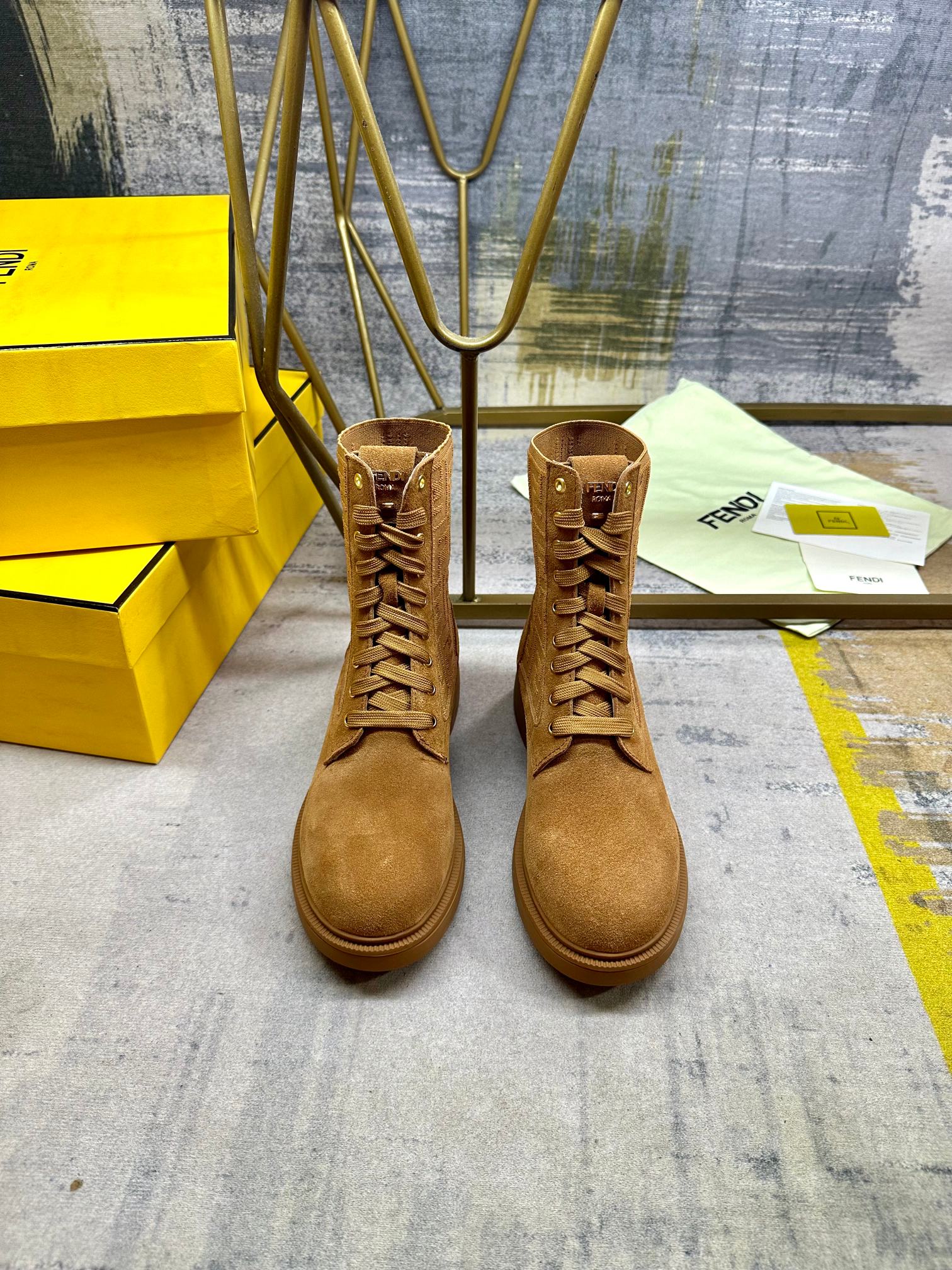 Fendi Filo Round-Toe Motorcycle Boots Brown Calfskin 575419
