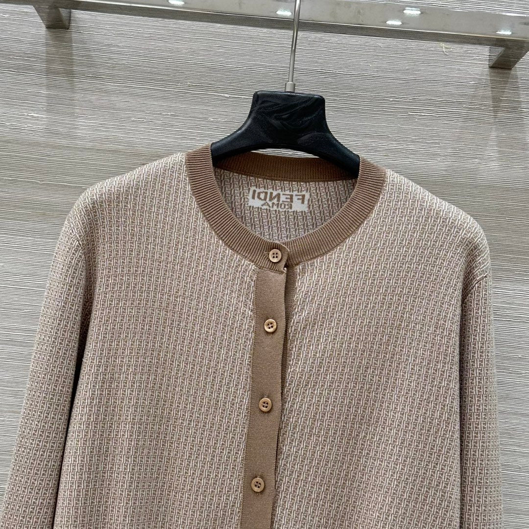Fendi Knitted Cardigan Top Brown Wool