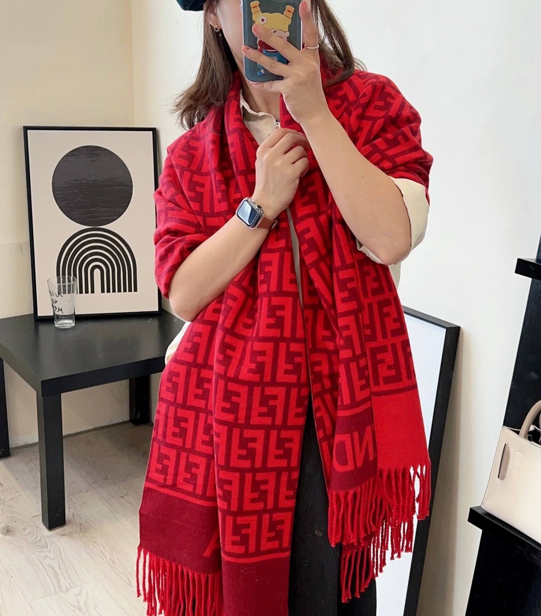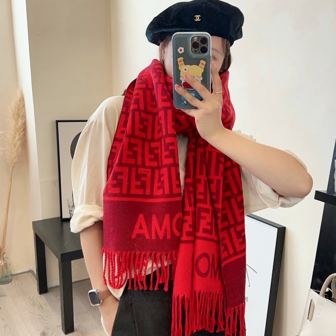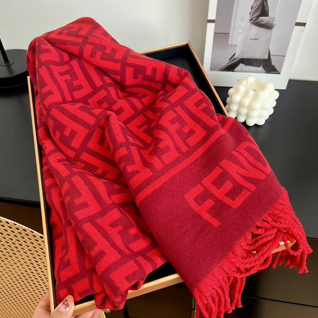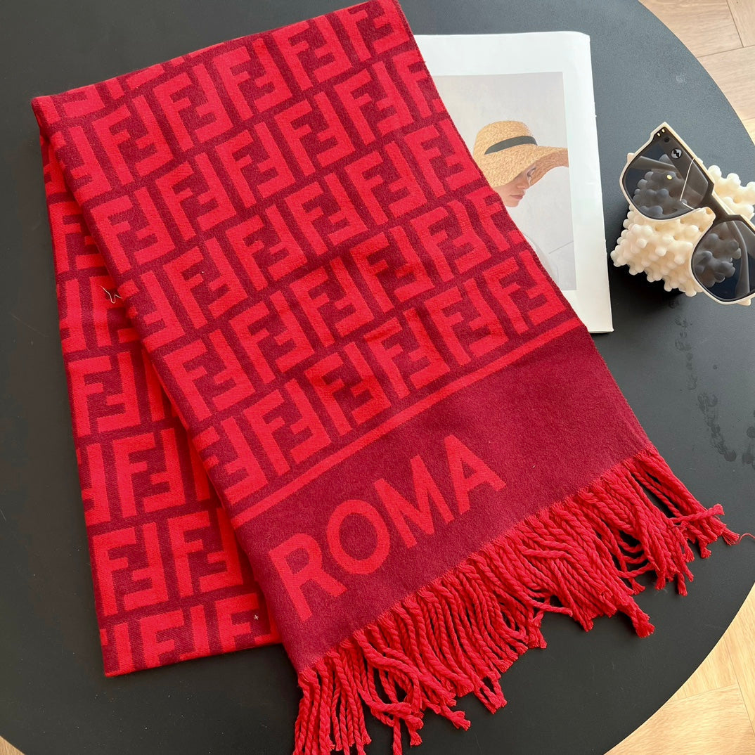FF Jacquard 180CM Scarf Red Wool 103630