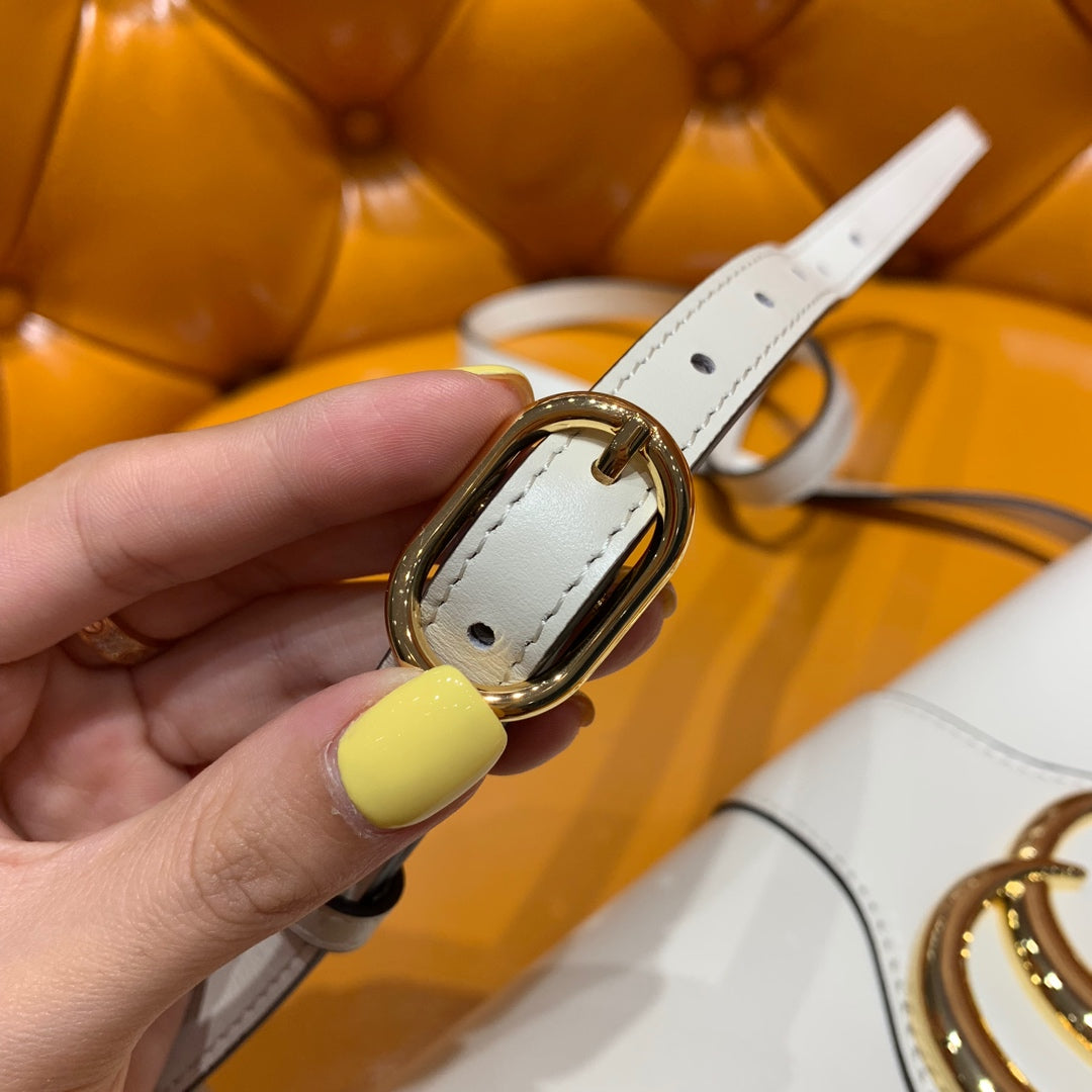Each bag will ship with a small pouch containing two additional button covers that can be used to cover the exposed studs when the shoulder strap is lengthened