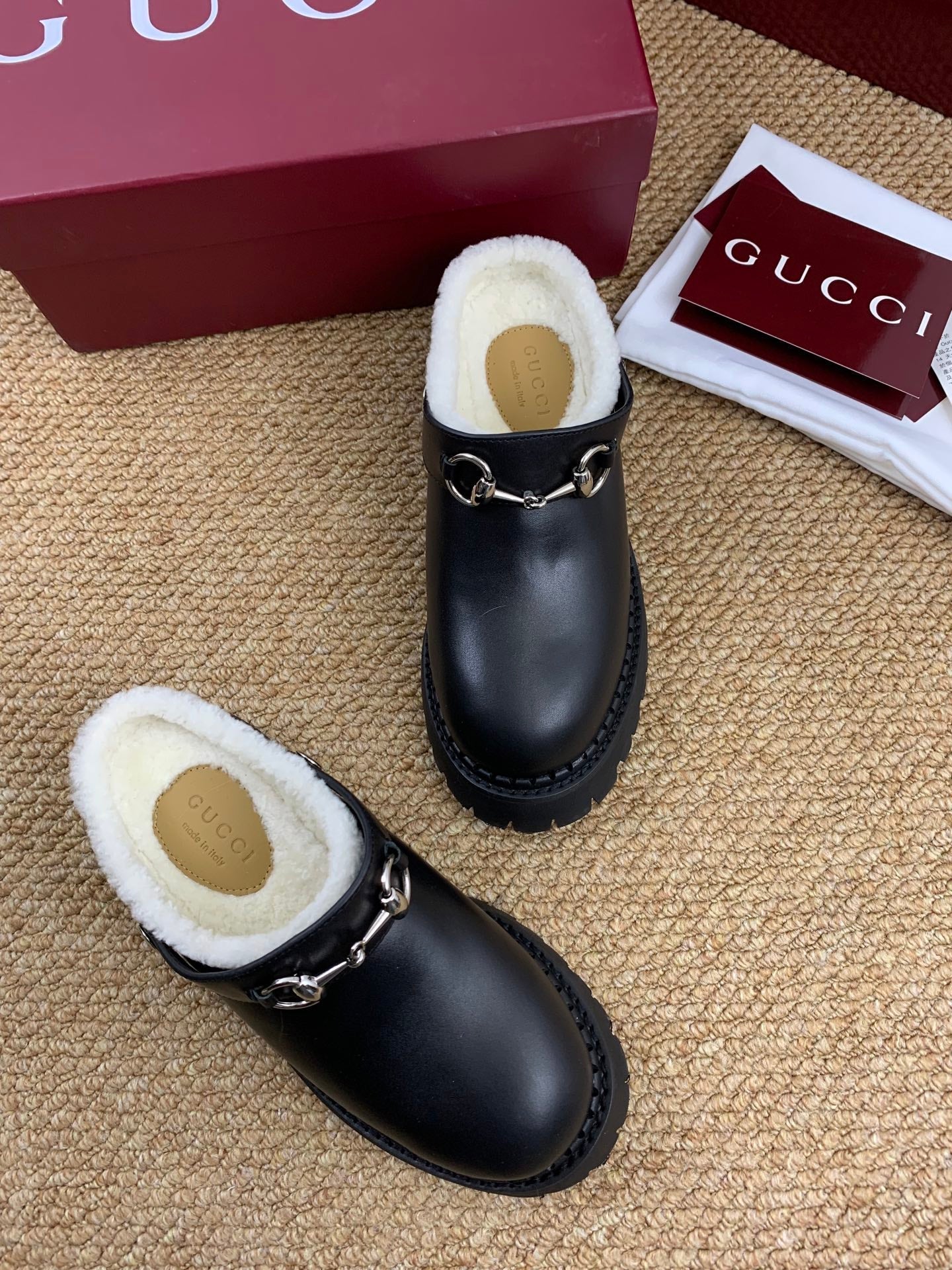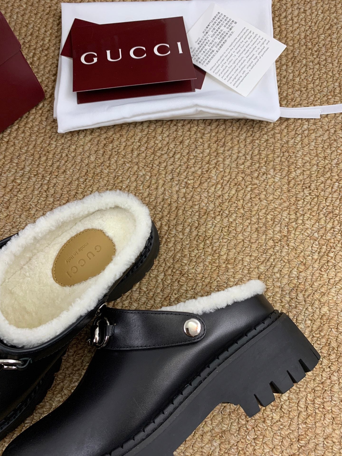 • Materials: Leather with Shearling