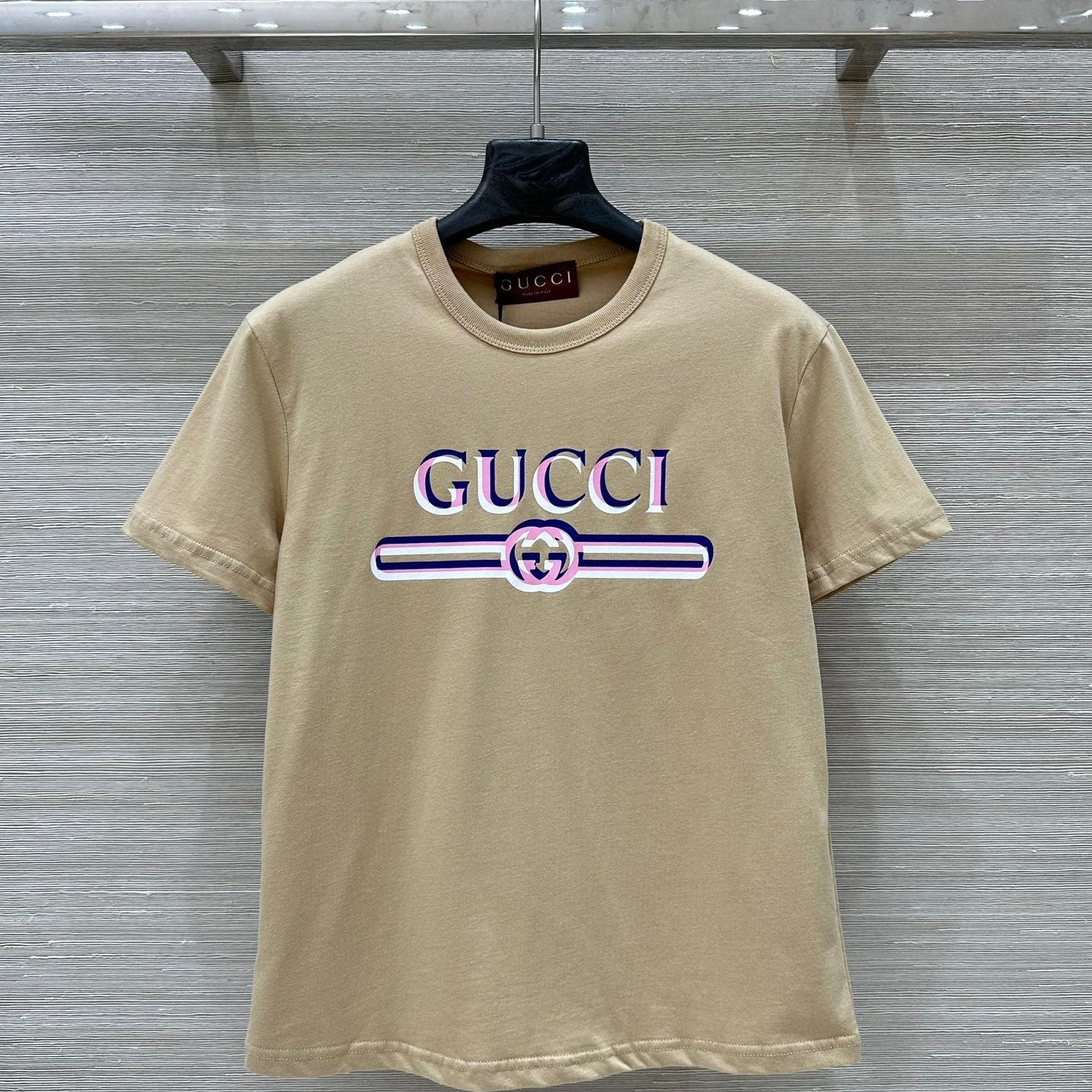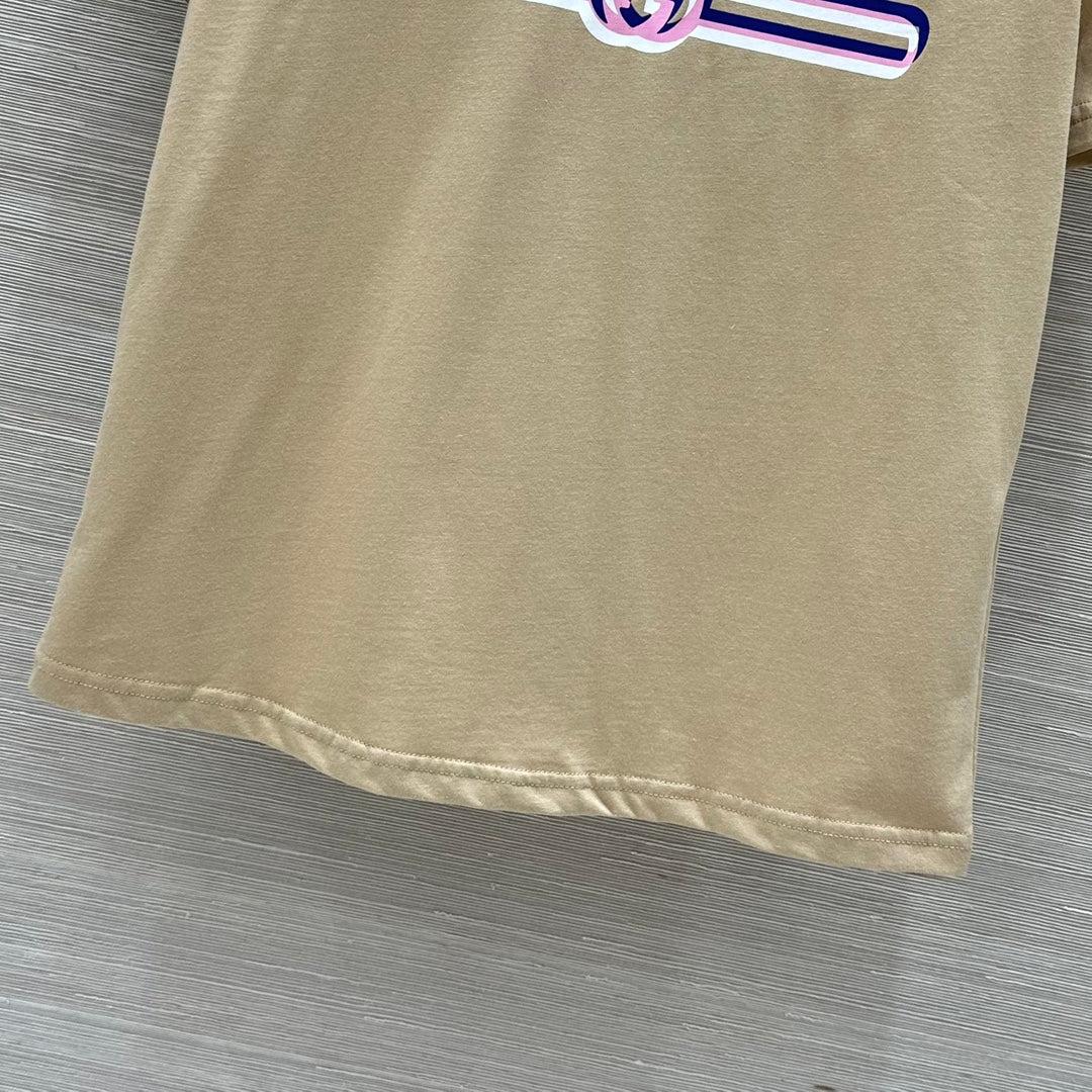 Gucci 25 Print Round Neck Short-sleeved T-shirt Light Camel Cotton