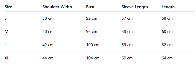 • Size: S, M, L, XL