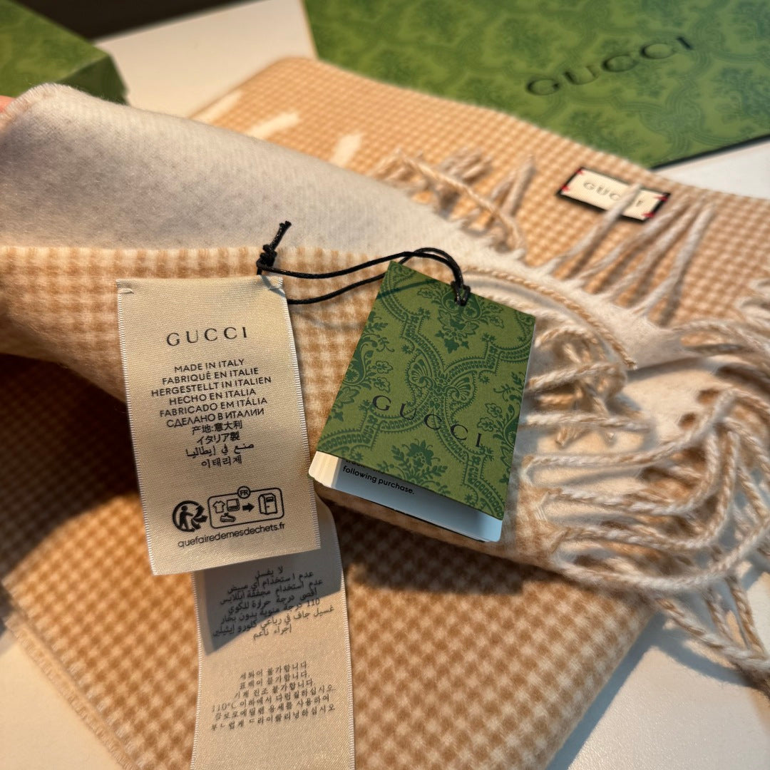 GG Houndstooth Scarf 180CM Beige Cashmere 288335