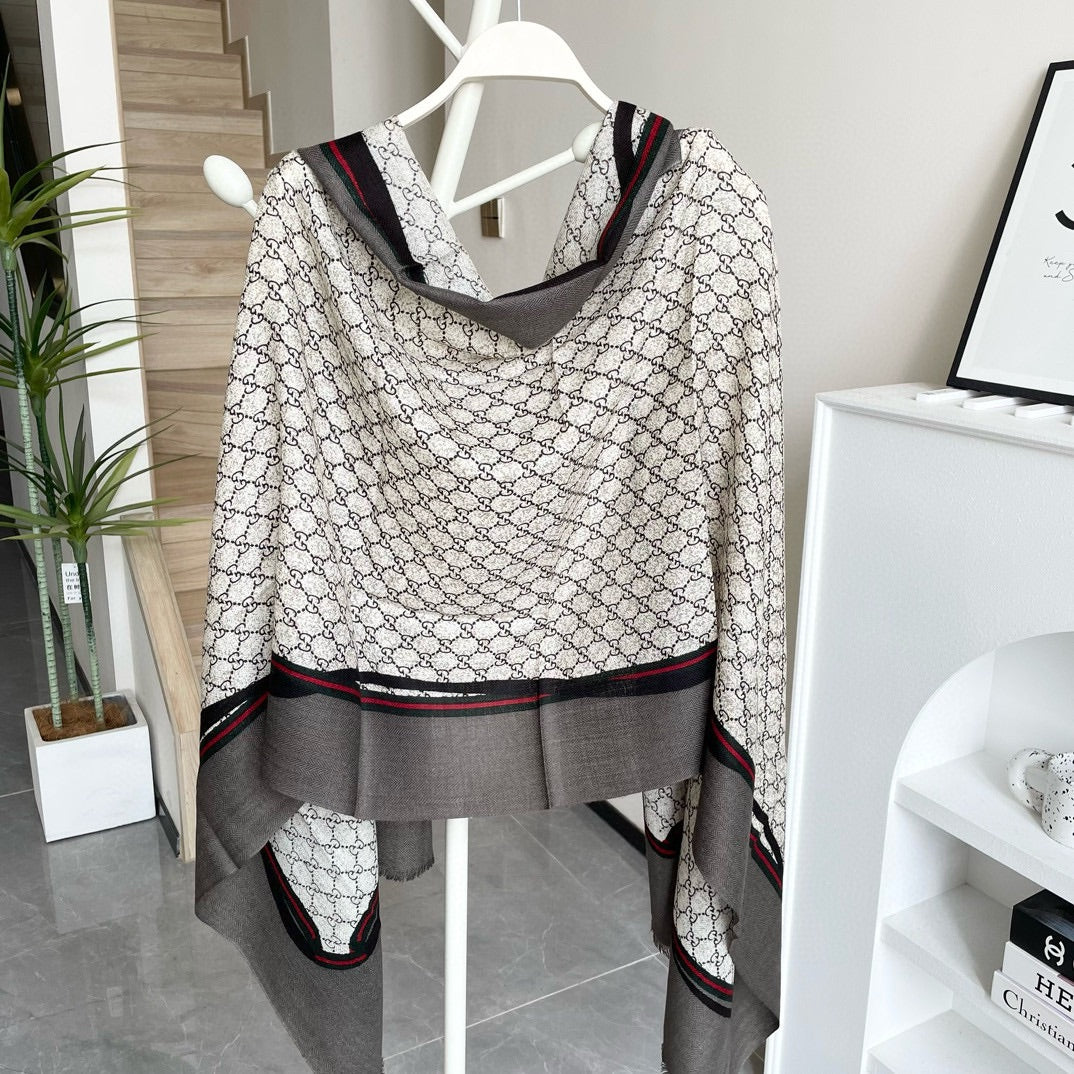 SCARF 200 CM IN KHAKI BROWN MONOGRAM WOOL 399767