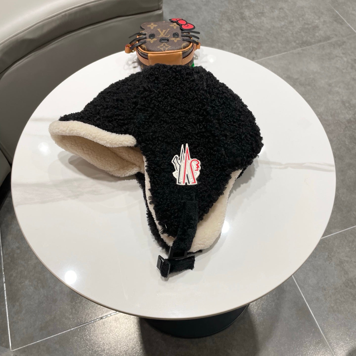 Moncler Winter Lambswool Thickened Earflap Black Hat 980314
