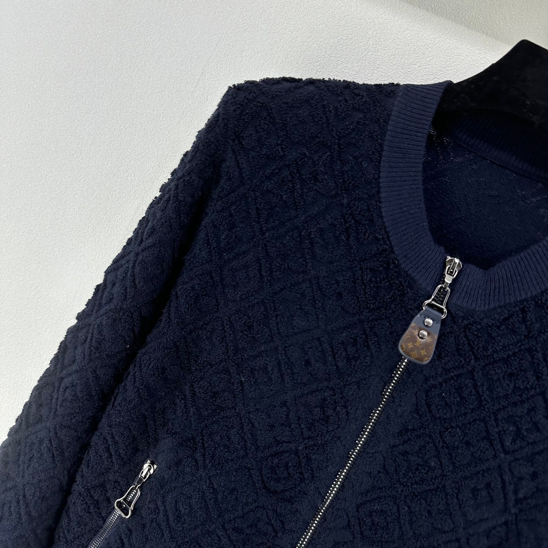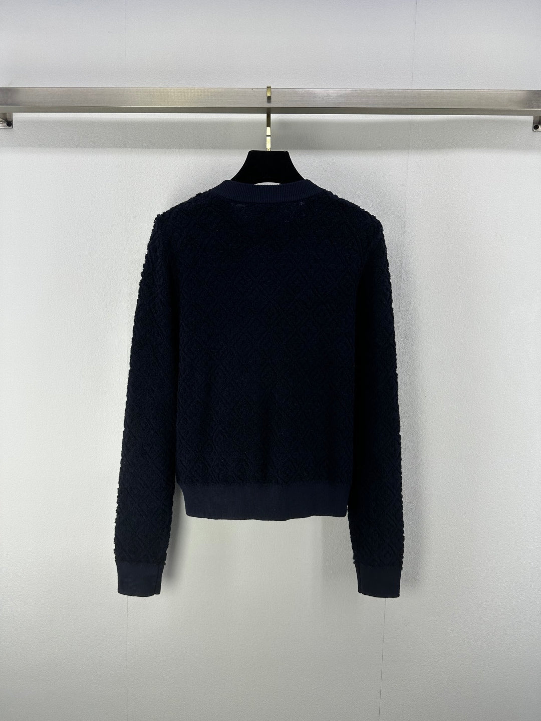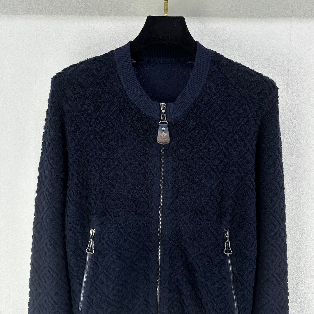 LV Embossed Long-Sleeved Cardigan in Navy Blue Wool 271049