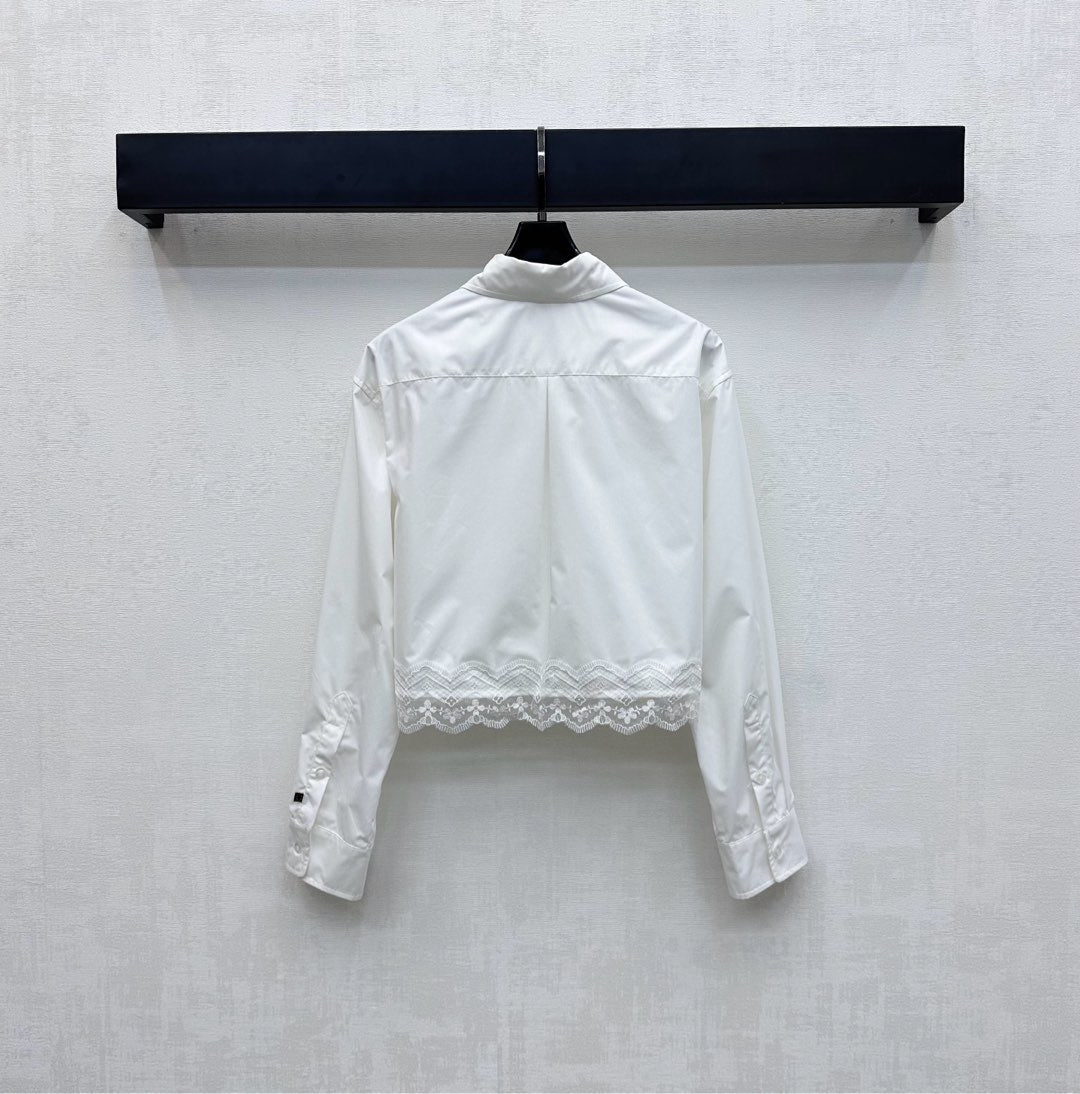 LV25 Lace-Trimmed Shirt and Shorts Set White Cotton 290149
