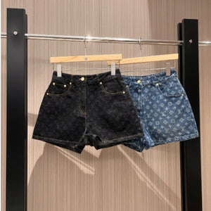 LV 25 Bourgoise Series Printed Zipper Denim Shorts White Cotton