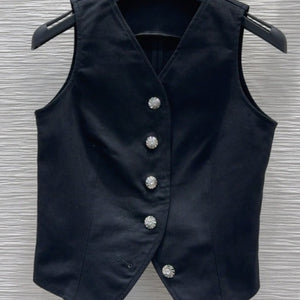 LV25 Vest Daisy Flower Youthful Black Cotton