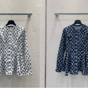 LV Denim Fabric Double Head Zipper Dress Black Blue Cotton