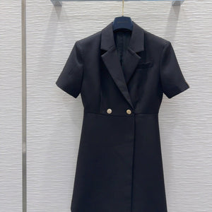 LV 25 Palace Style Short-Sleeved Dress Black Polyester