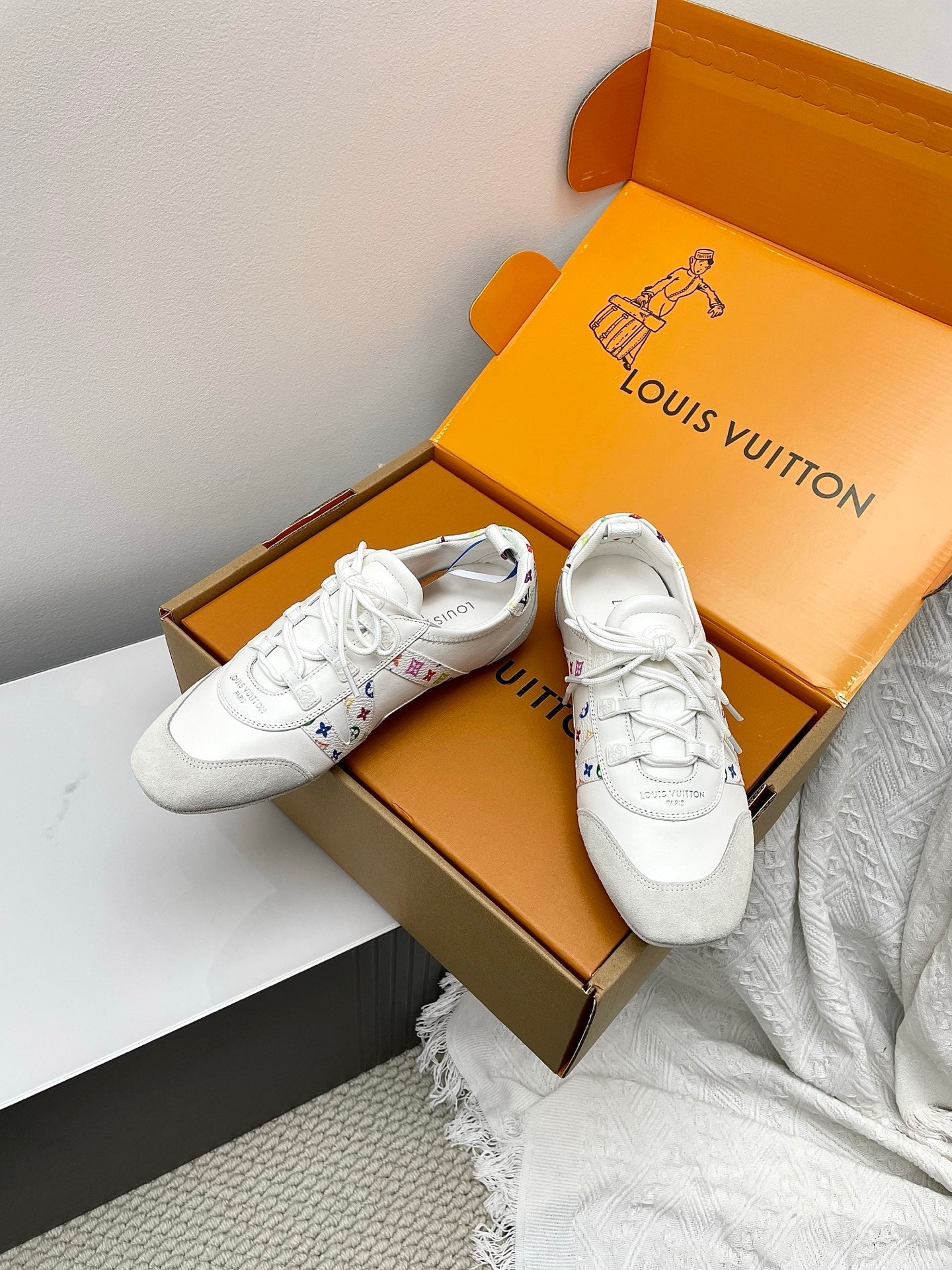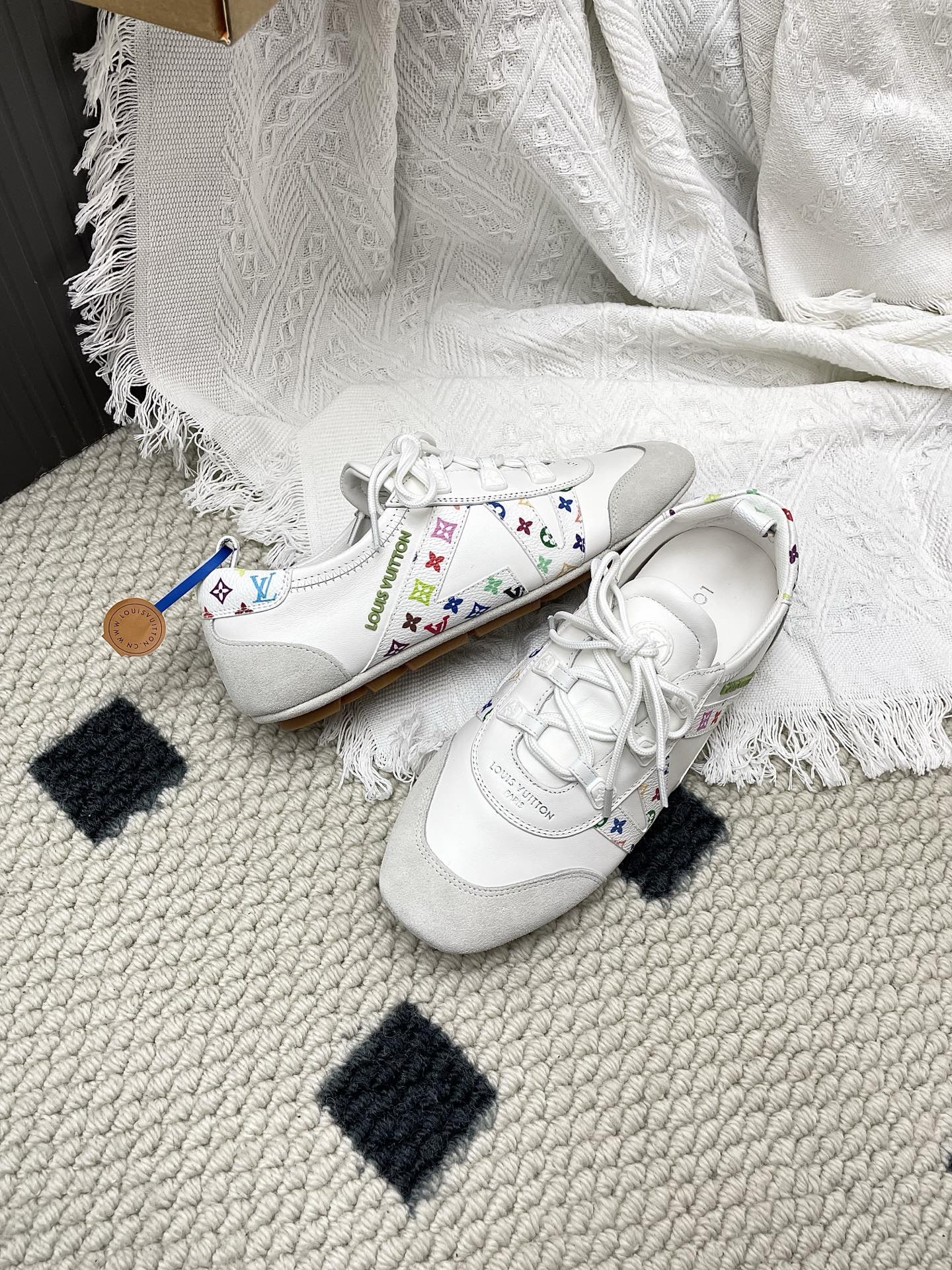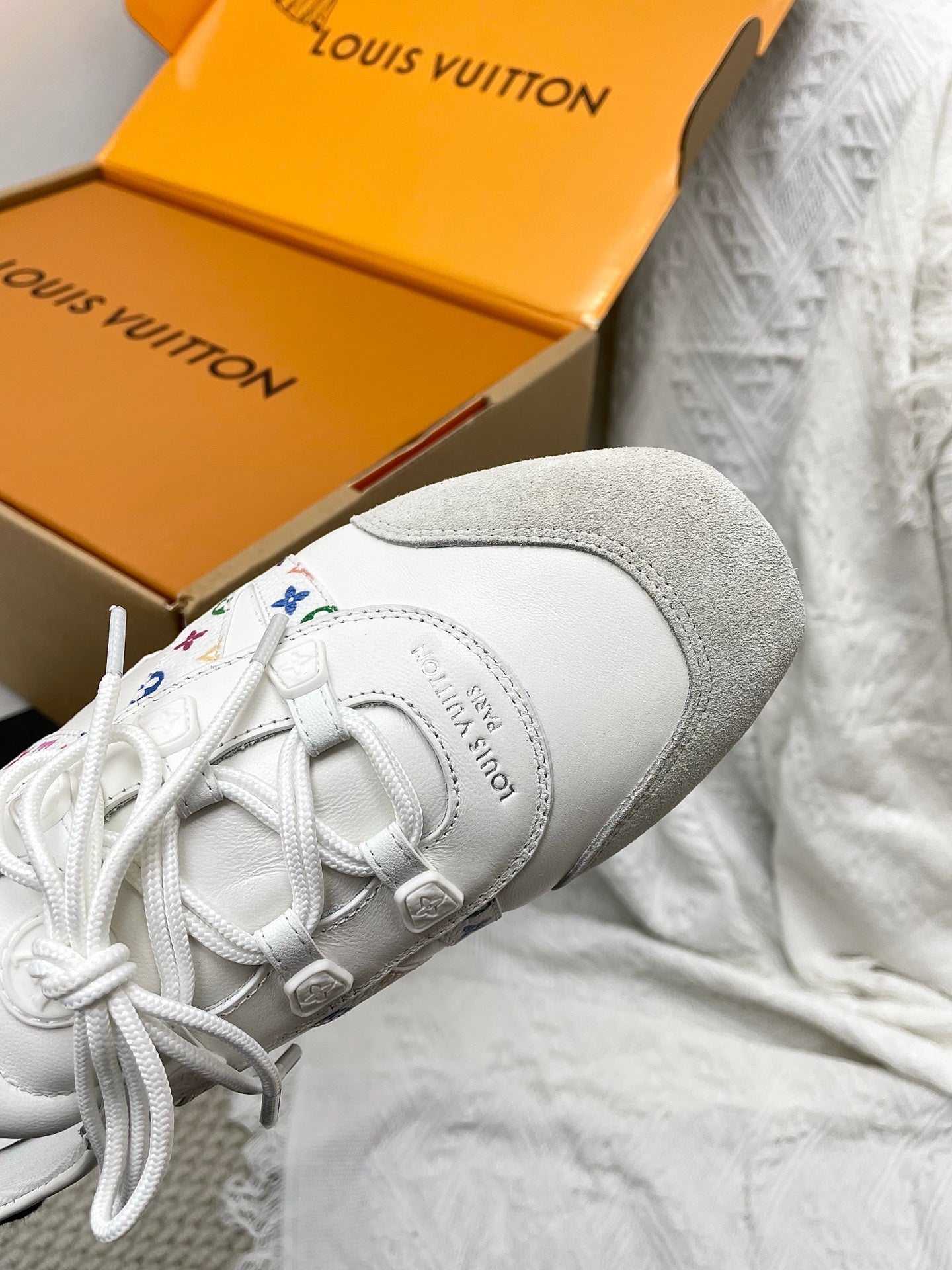 LV x TM Sneakerina White Grey Suede Cowhide 611116