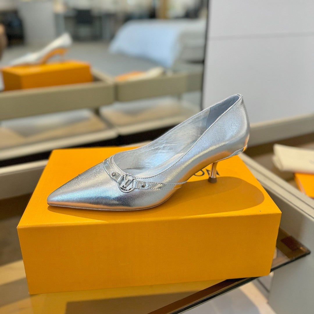 6AM 5.5cm Silver Metallic Leather Pumps 241209