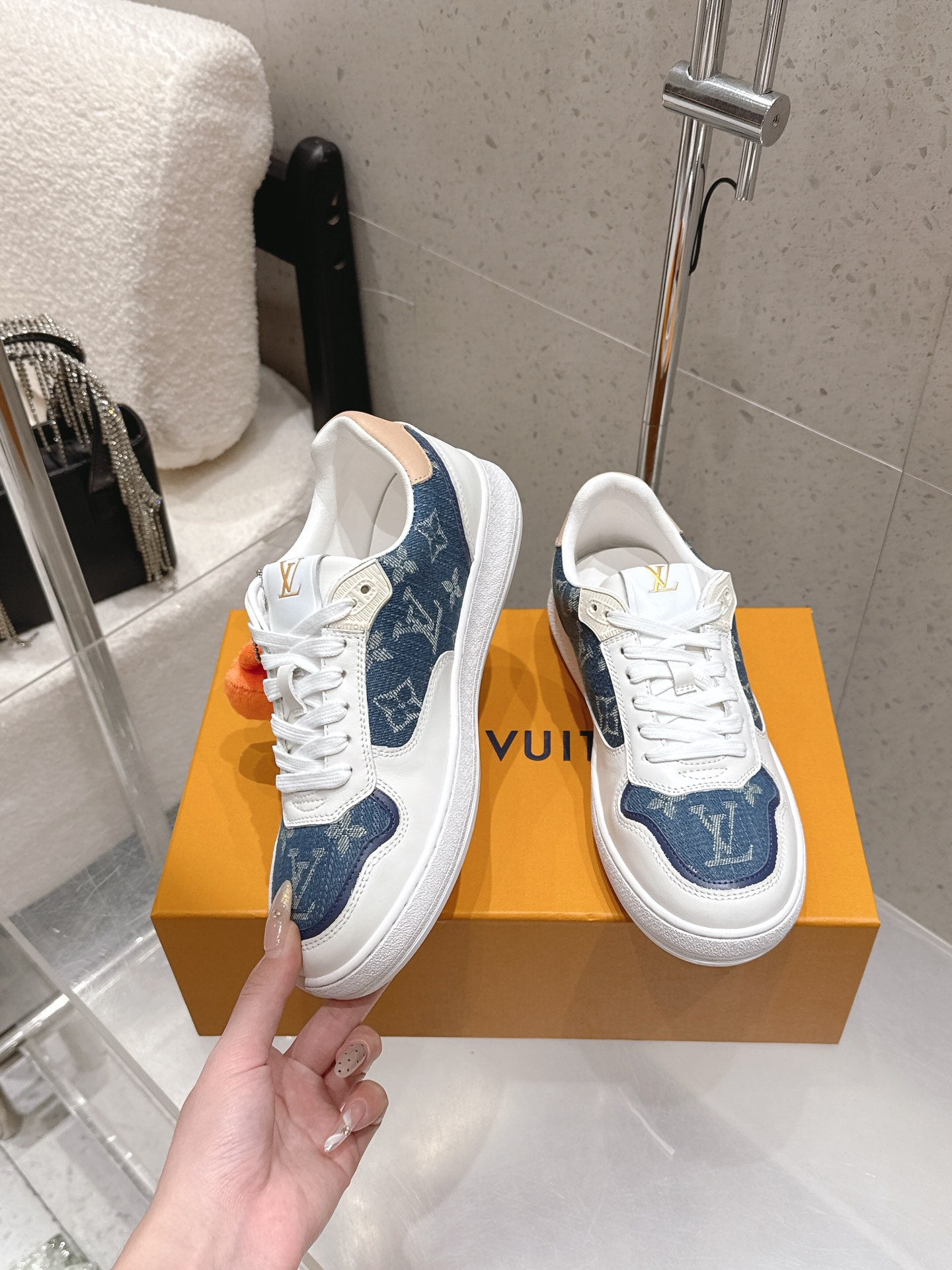 LV Stadium Sneaker White Blue Denim Cowhide 610790