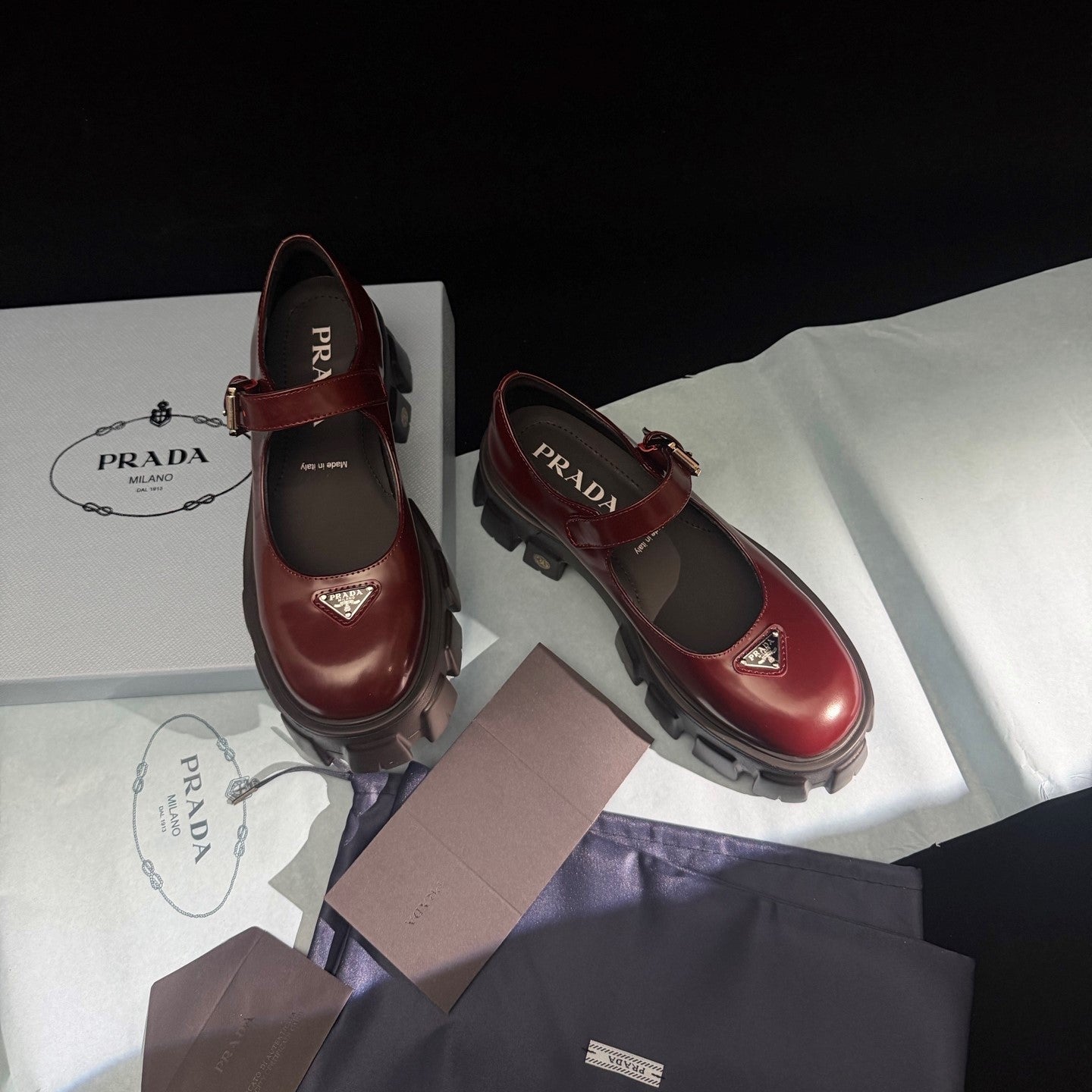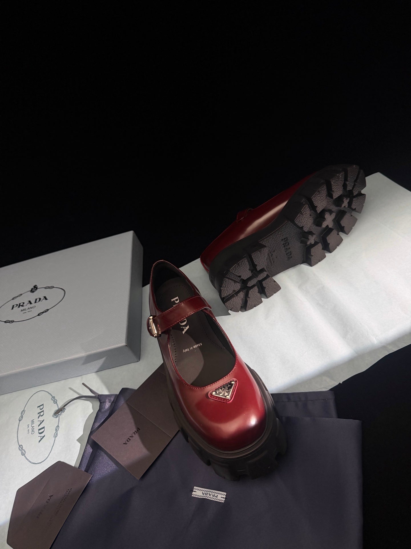 Prada Brushed Monolith Mary Janes Loafer Burgundy Leather 606061