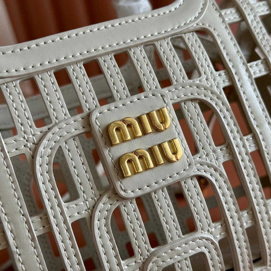 WOVEN HOLLOW BAG 24 IN WHITE CALFSKIN