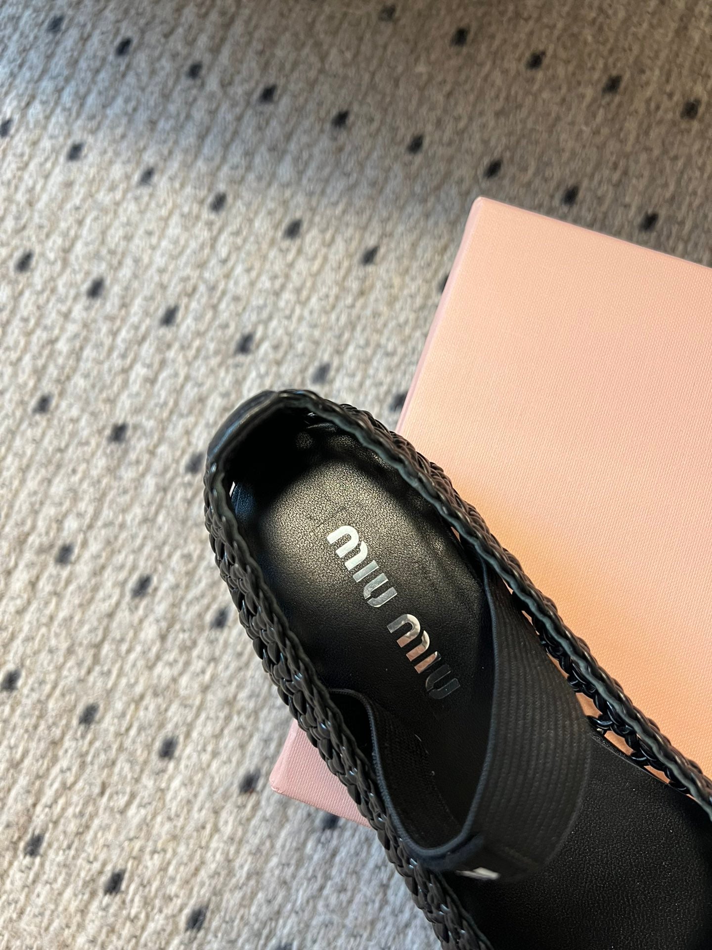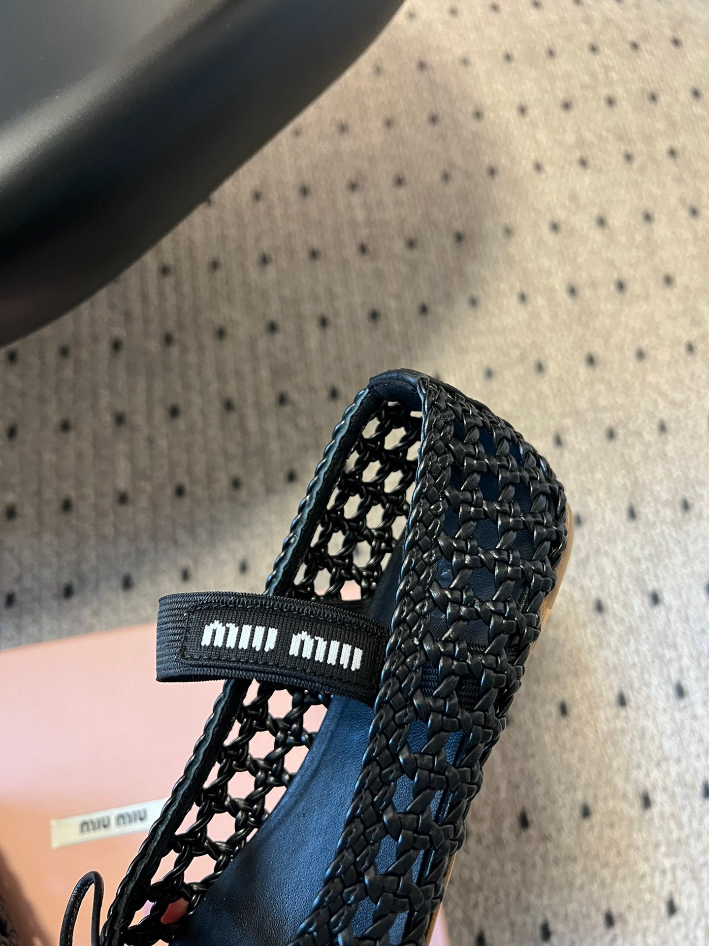 Miu Miu 26SS Ballet Flats Black in Sheepskin Leather Woven Mesh 614698