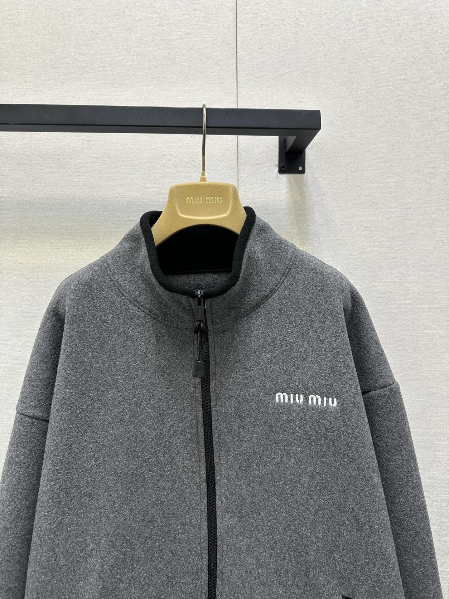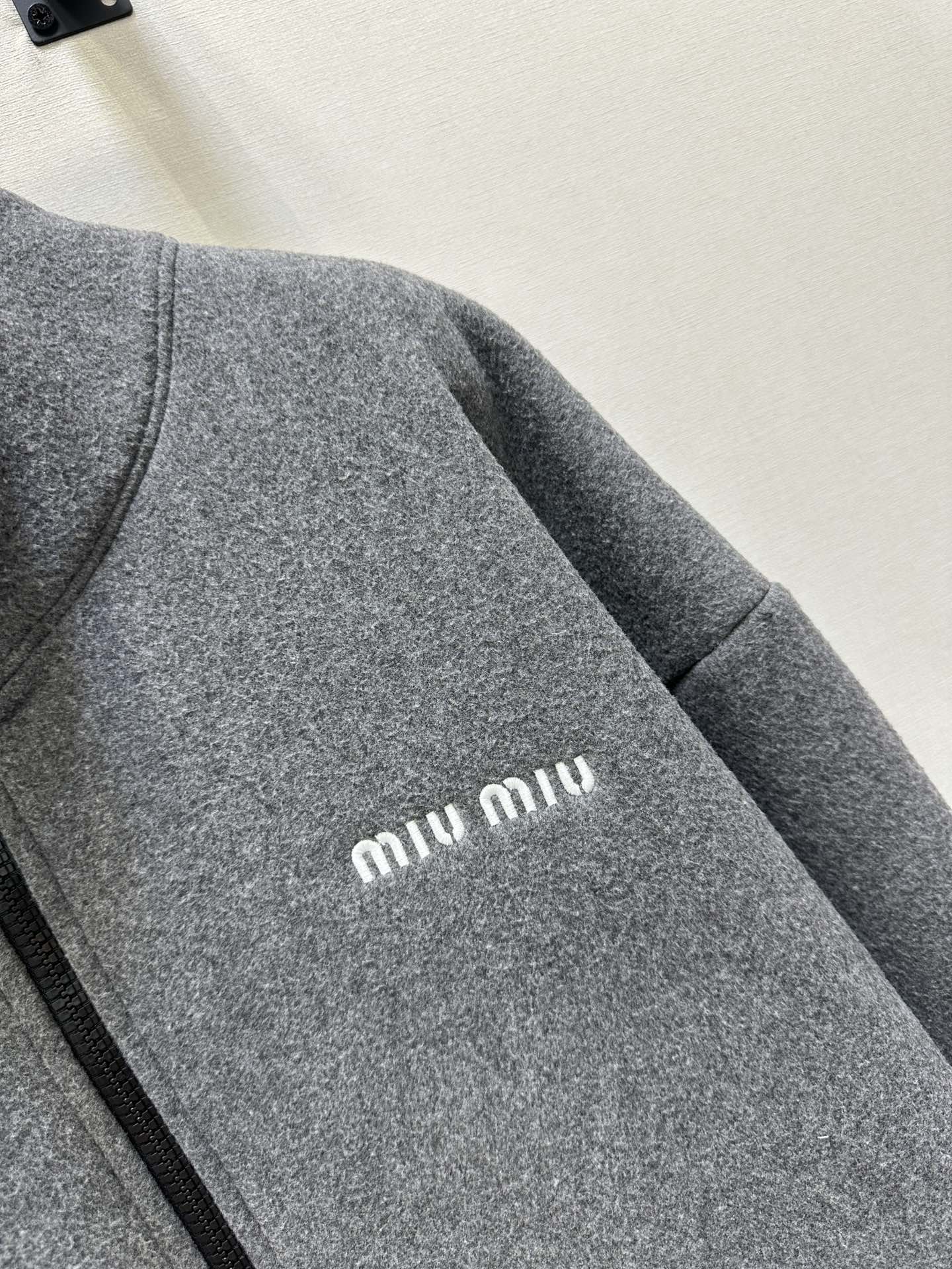 Miu Embroidered Fleece Hooded Zip-Up Jacket Dark Grey Cashmere 346110