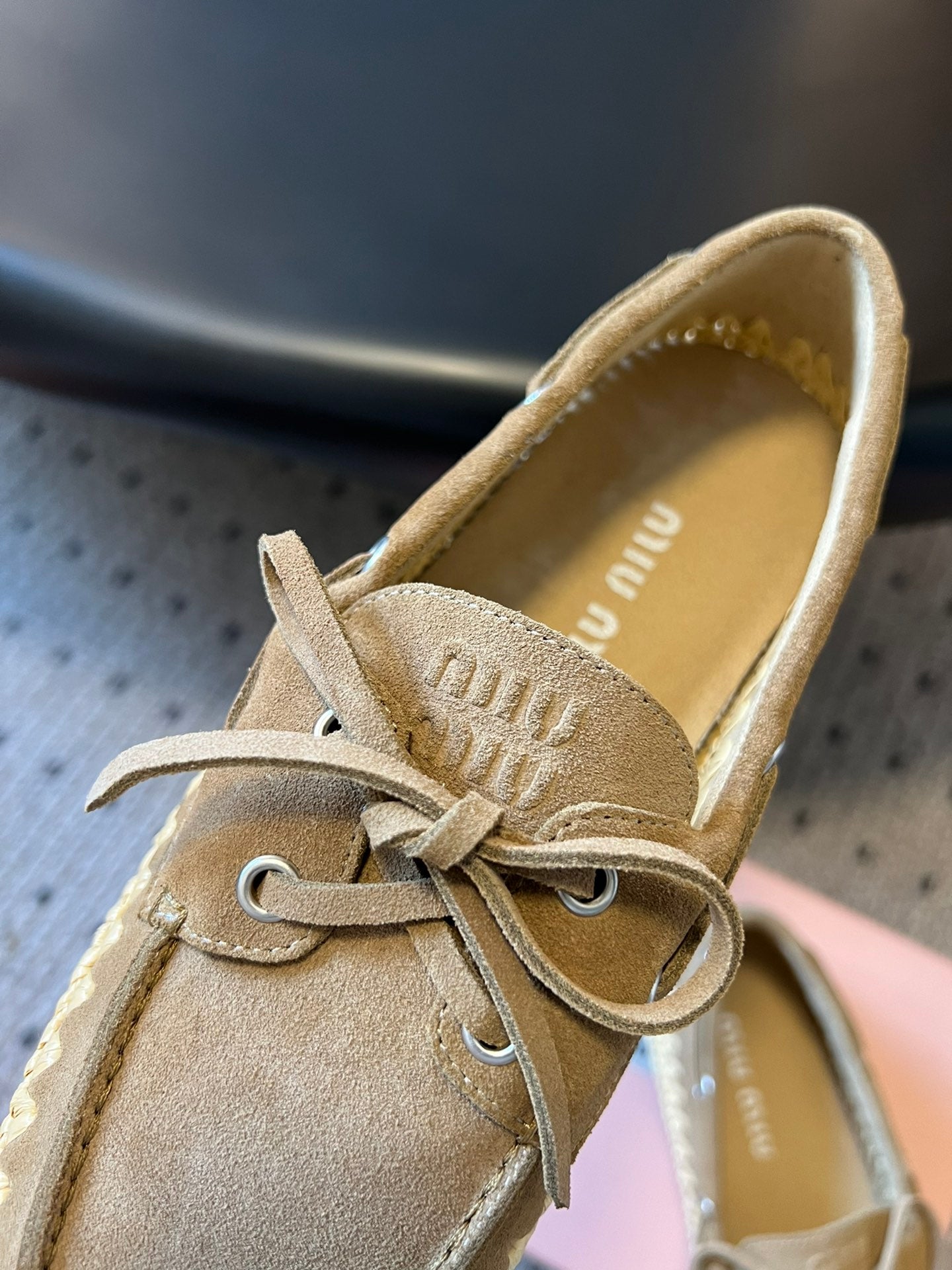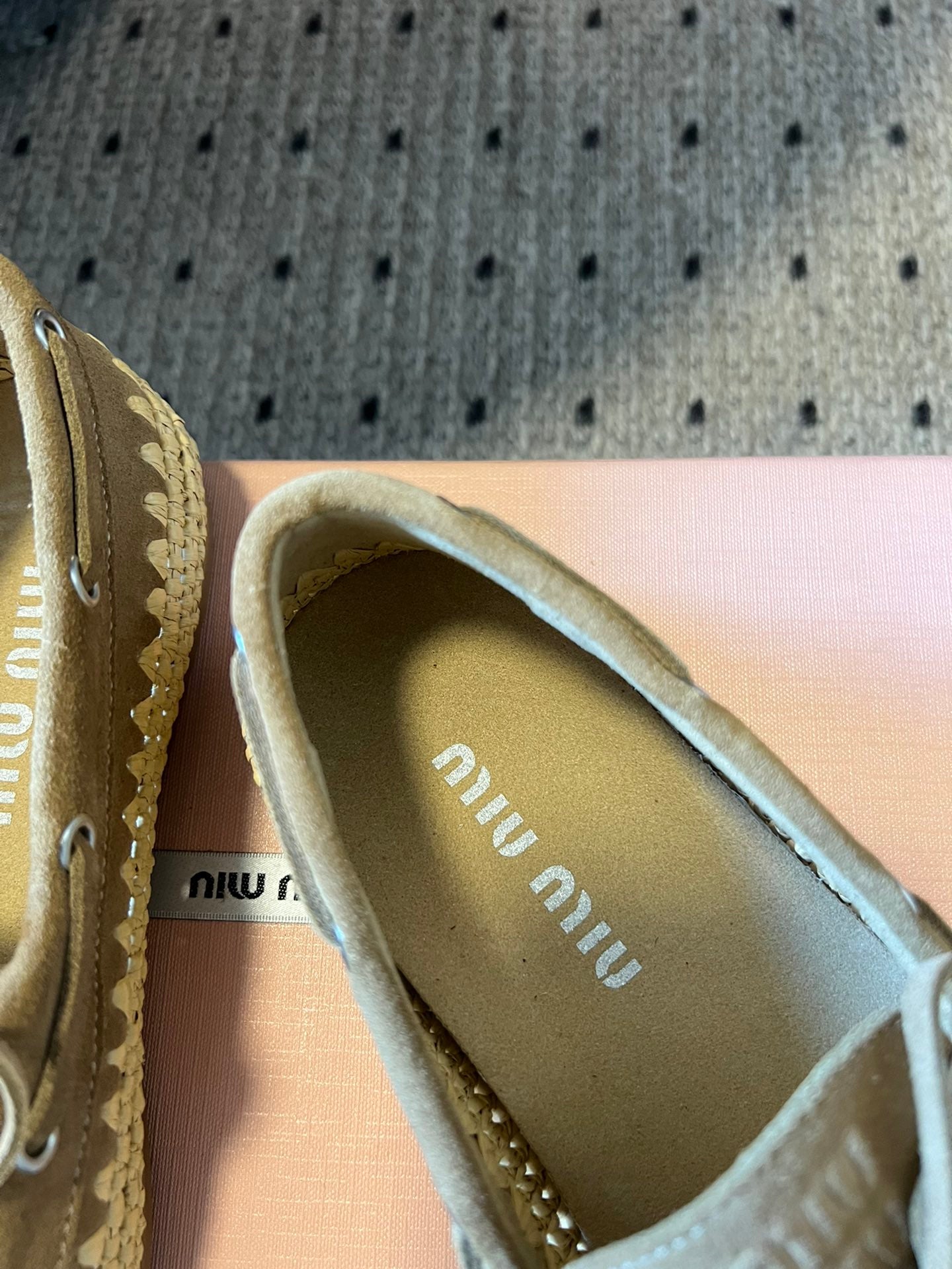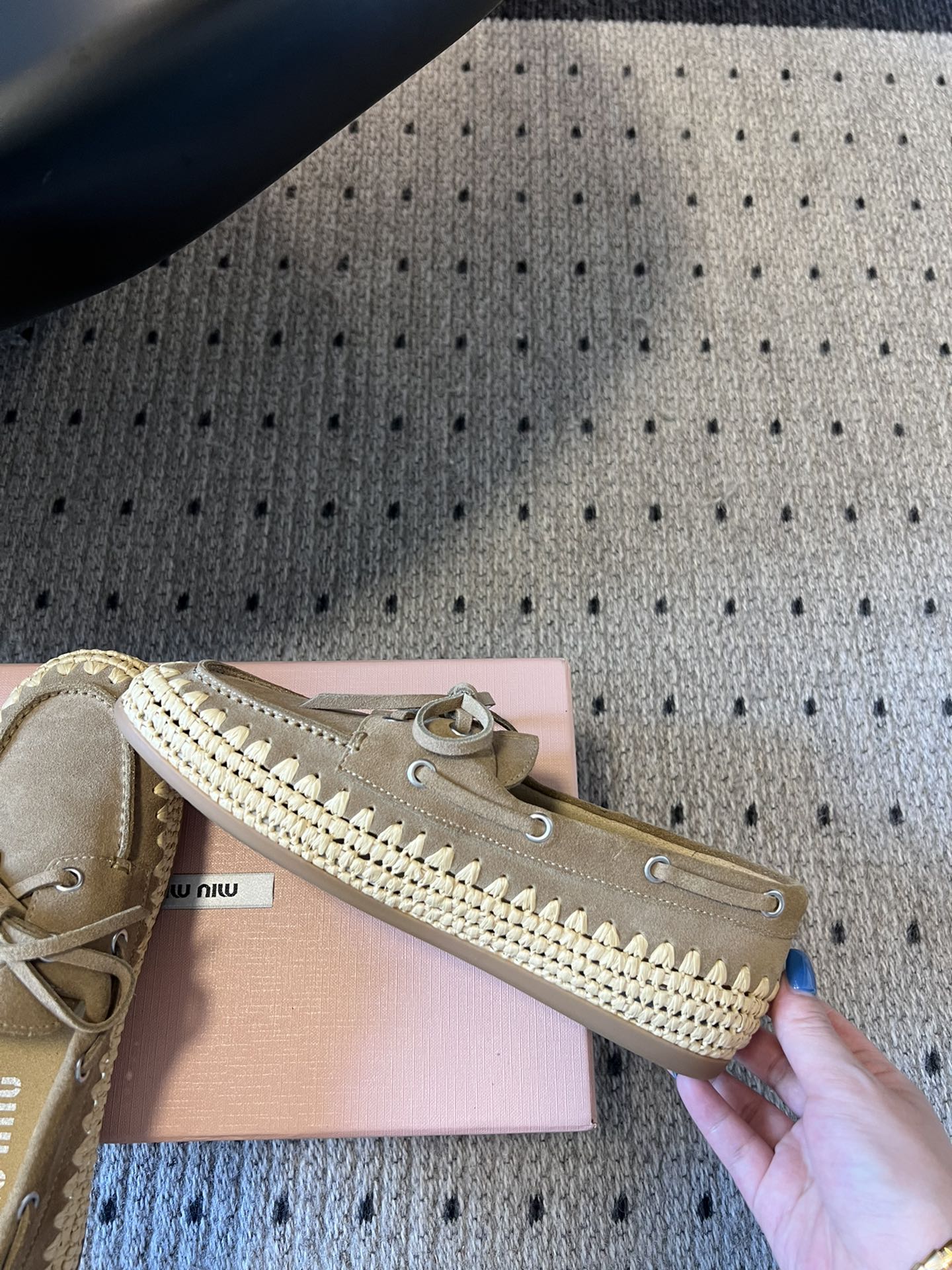 Miu Miu 26ss Loafer Taupe in Suede With Raffia Straw 614558
