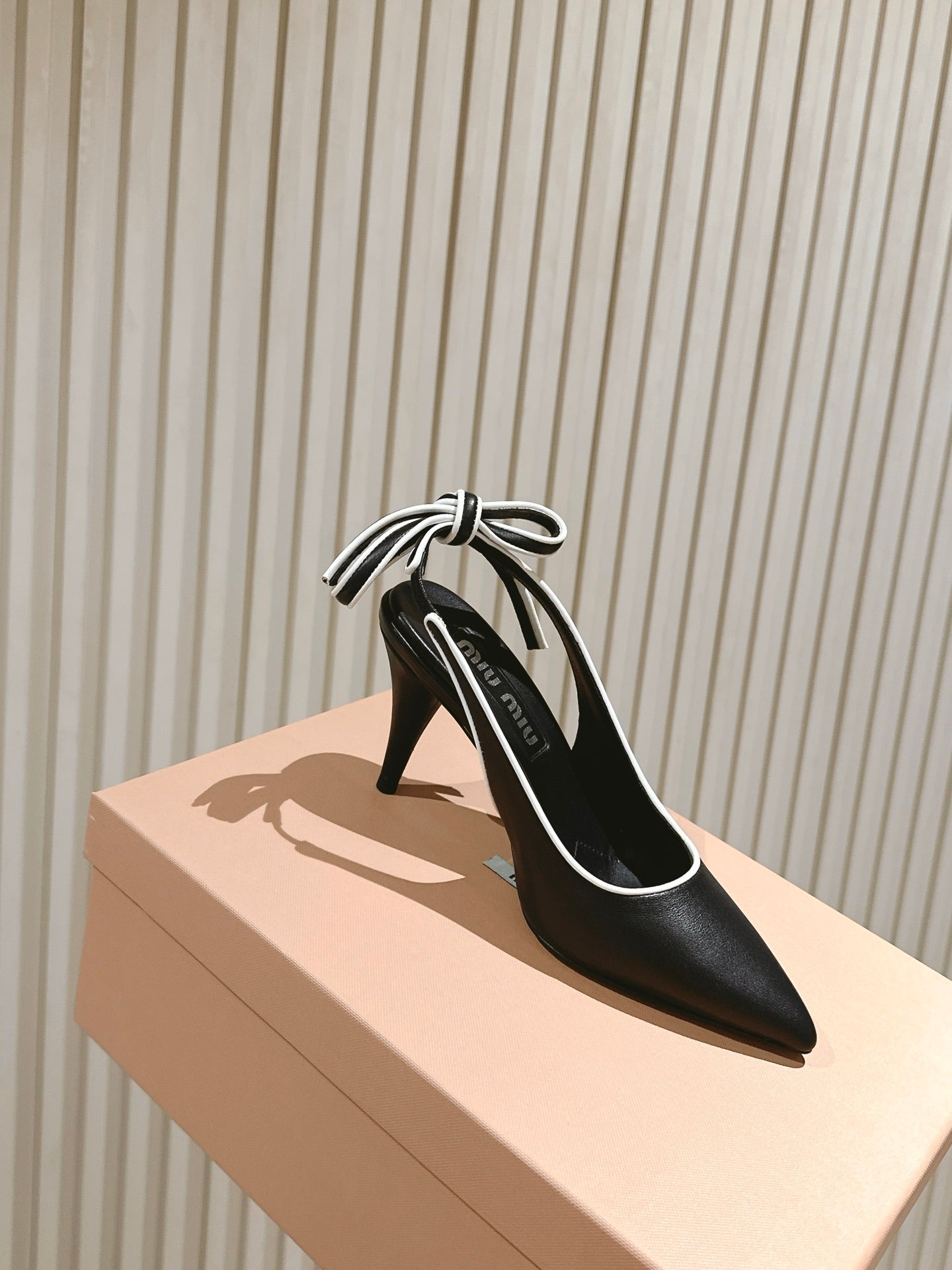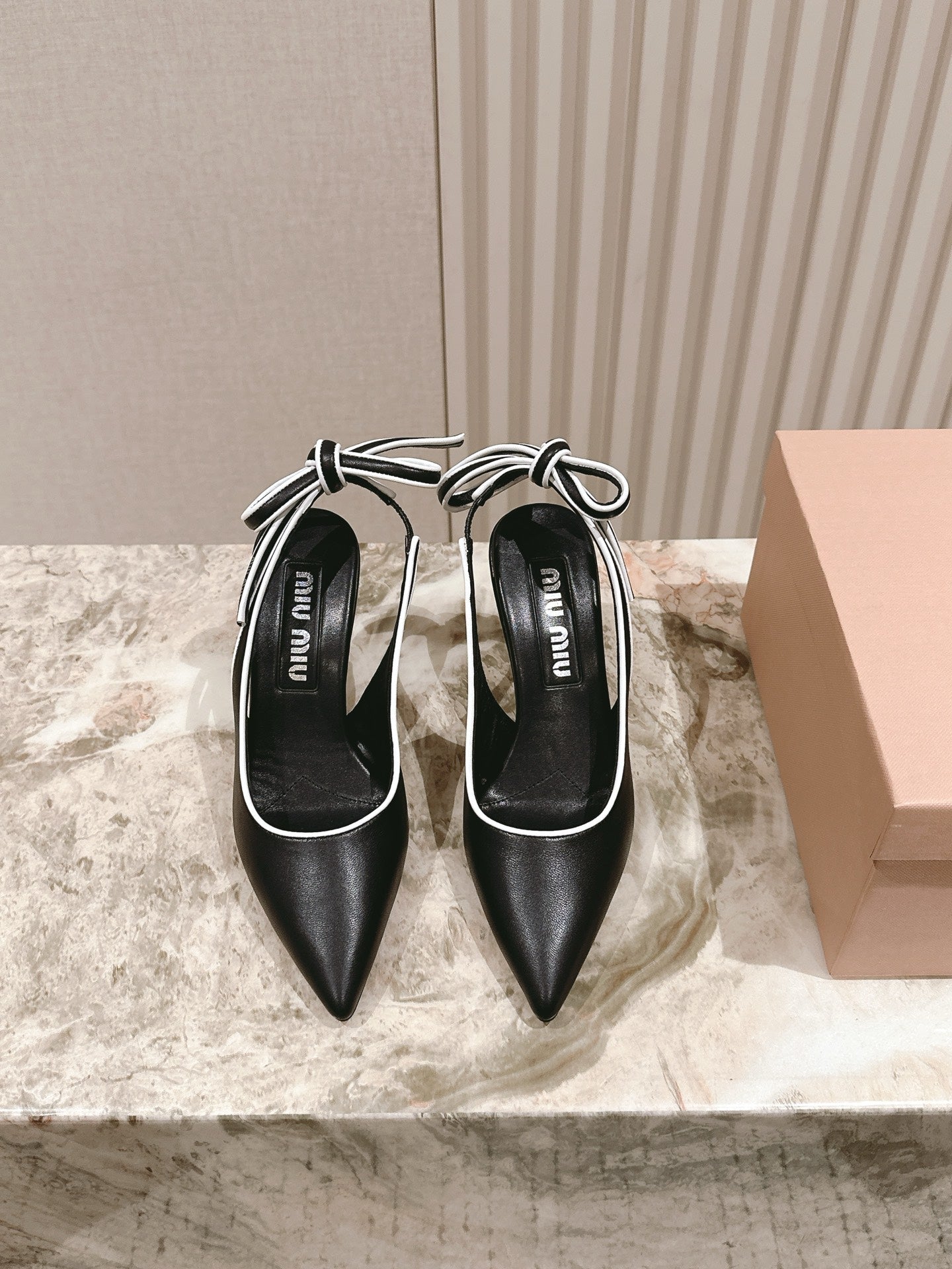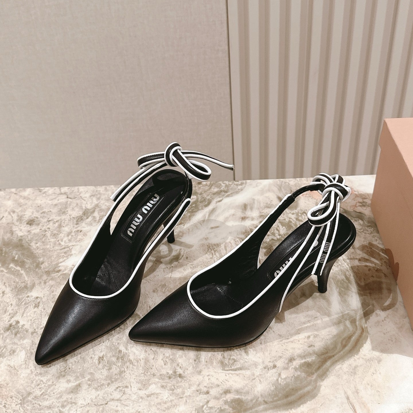 Miu Mordoré Pointed Toe Slingback Pumps 85mm Black Cowhide Sheepskin 445788