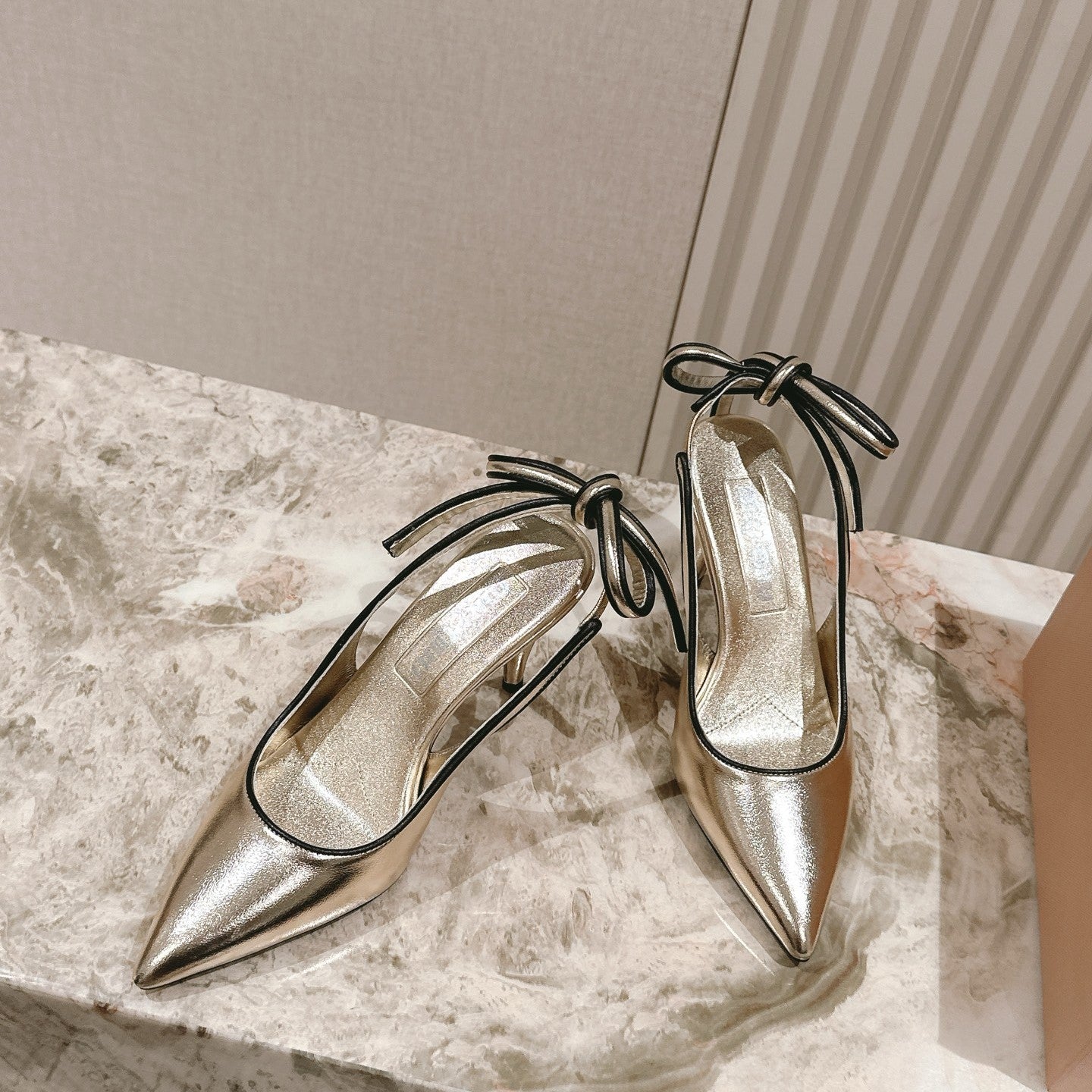 Miu Mordoré Pointed Toe Slingback Pumps 85mm Light Gold Cowhide Sheepskin 445789