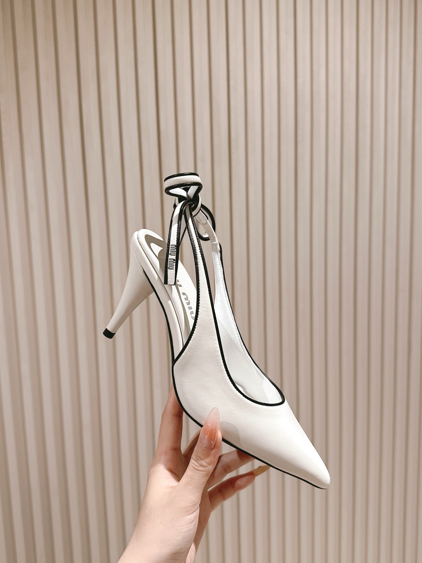 Miu Mordoré Pointed Toe Slingback Pumps 85mm White Cowhide Sheepskin 445786