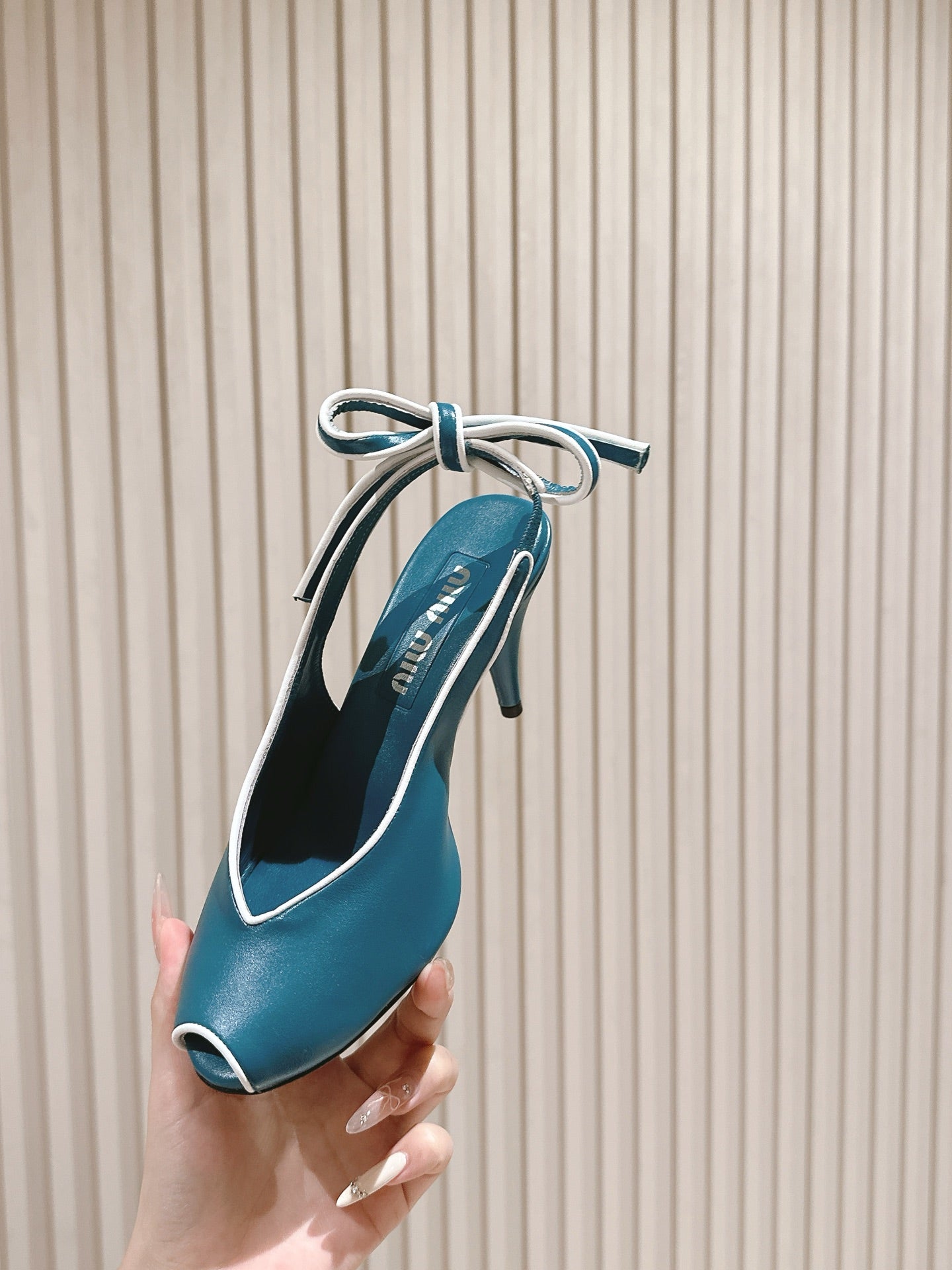 Miu Mordoré Slingback Pumps 85mm Blue-teal.Cowhide Sheepskin 445792